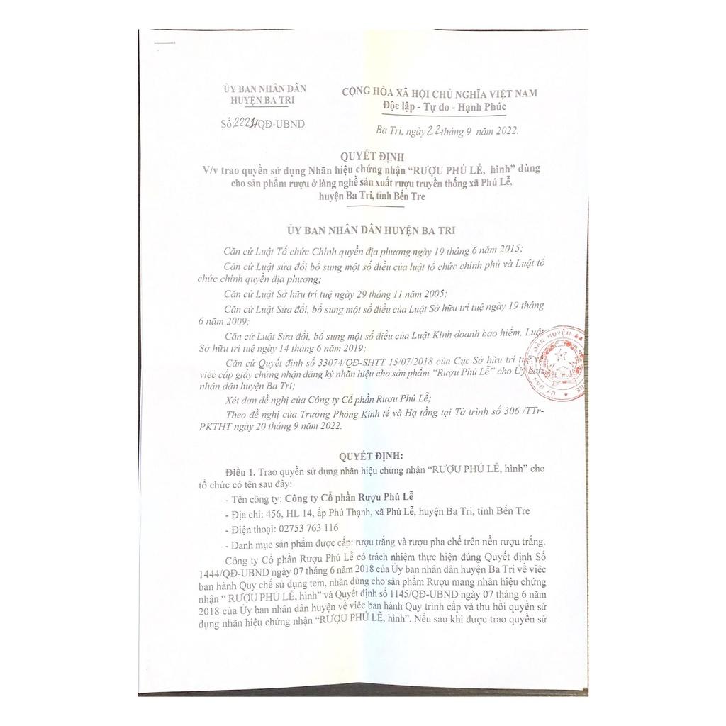RƯỢU PHÚ LỄ - KHƠI BẢN SẮC, TOẢ TINH HOA RƯỢU VIỆT Công ty Cổ phần Rượu Phú Lễ là công ty sản xuất rượu Việt Nam có trụ sở chính tại số 456 HL