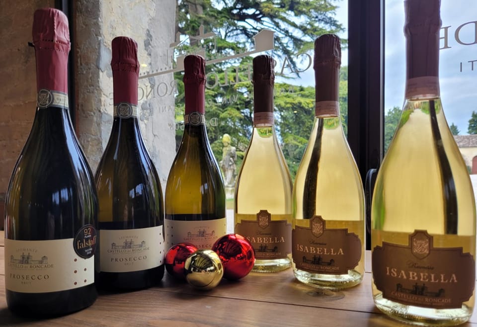 Rượu vang nổ,vang sủi tăm Castello di Roncade Prosecco DOC Extra Dry (Italia/ Ý ) Spumante DOC Treviso.Rượu vang đạt tiêu chuẩn Denominazione di Origine Controllata (DOC).1 trong 3 thang điểm của rượu Ý. Prosecco