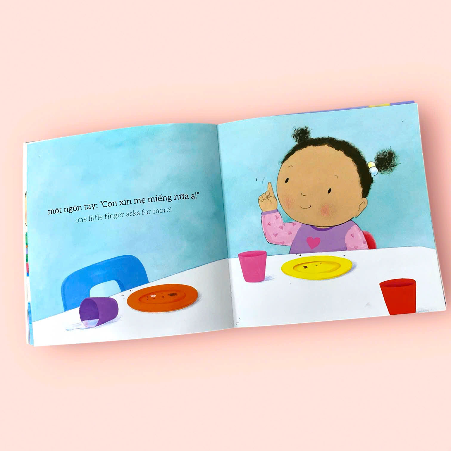 “ MƯỜI NGÓN TAY XINH, ĐÔI BÀN TAY NHỎ” là một cuốn sách song ngữ đáng yêu, được viết dành riêng cho các bé từ 0-3 tuổi.