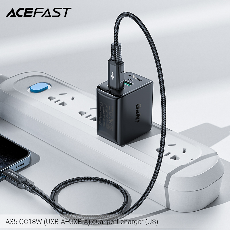 ✨Sạc Acefast QC18W 2 cổng USB-A (US) - A35 Hàng chính hãng Acefast