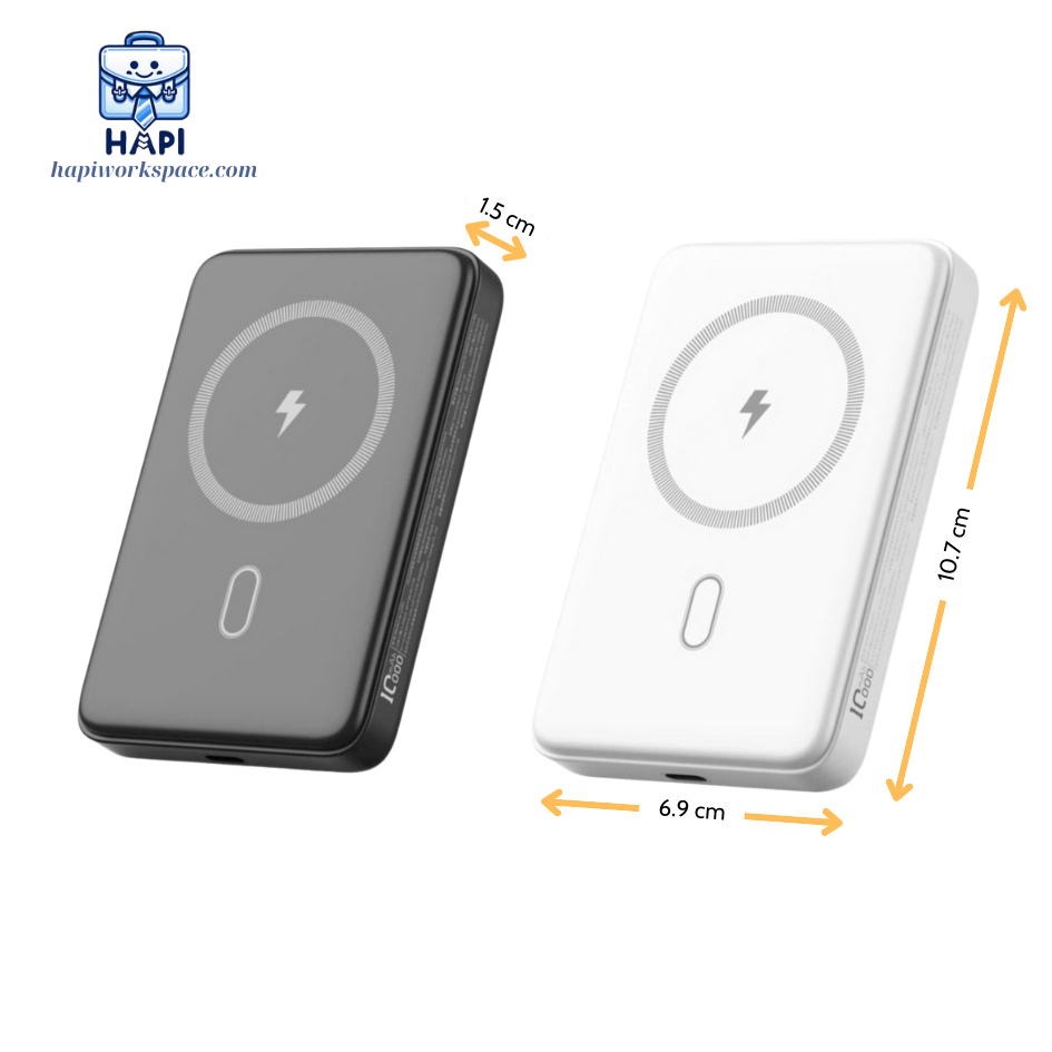 - Thiết kế nhỏ gọn kích thước 97 x 63 x 16 mm, trọng lượng 150g. - Sạc không dây từ tính tương thích với các thiết bị hỗ trợ sạc từ tính. - Dung