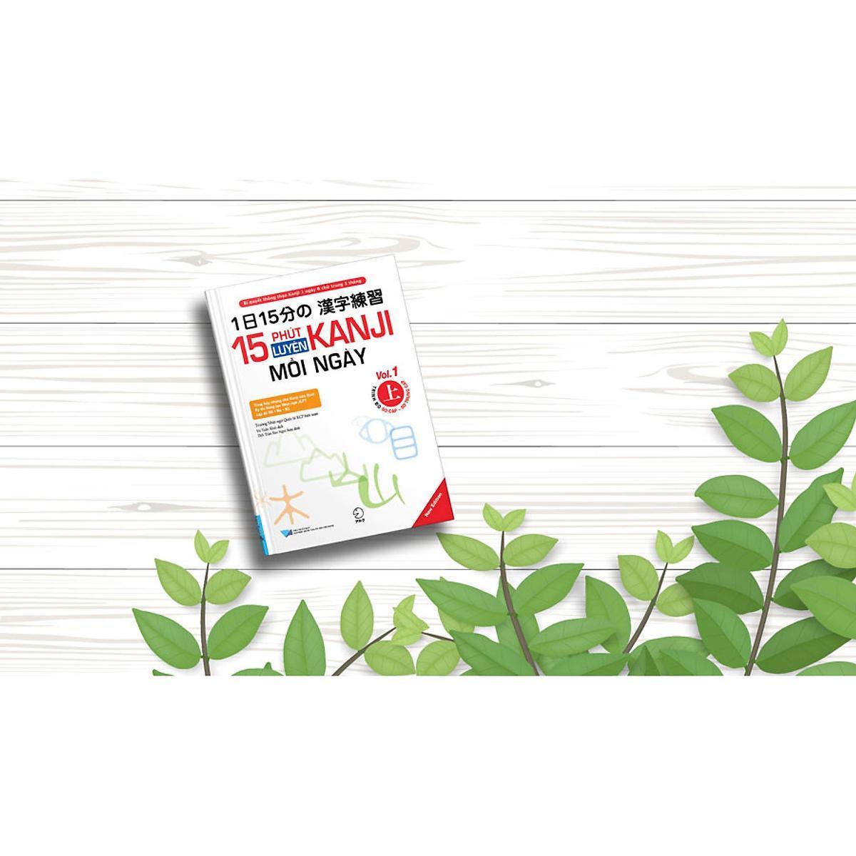 15 Phút luyện Kanji mỗi ngàylà bộ sách cung cấp bộ công cụ luyện tập chữ Kanji được chia theo cấp độ, tương ứng với các cấp độ của kỳ thi JLPT. Bộ sách gồm 4 tập với 2 cấp độ: Sơ cấp – Sơ trung cấp và Trung cấp.