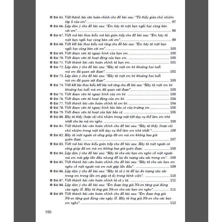 Trong cuốn sách này, tác giả giới thiệu 6 dạng bài làm văn khác nhau để các em luyện tập: