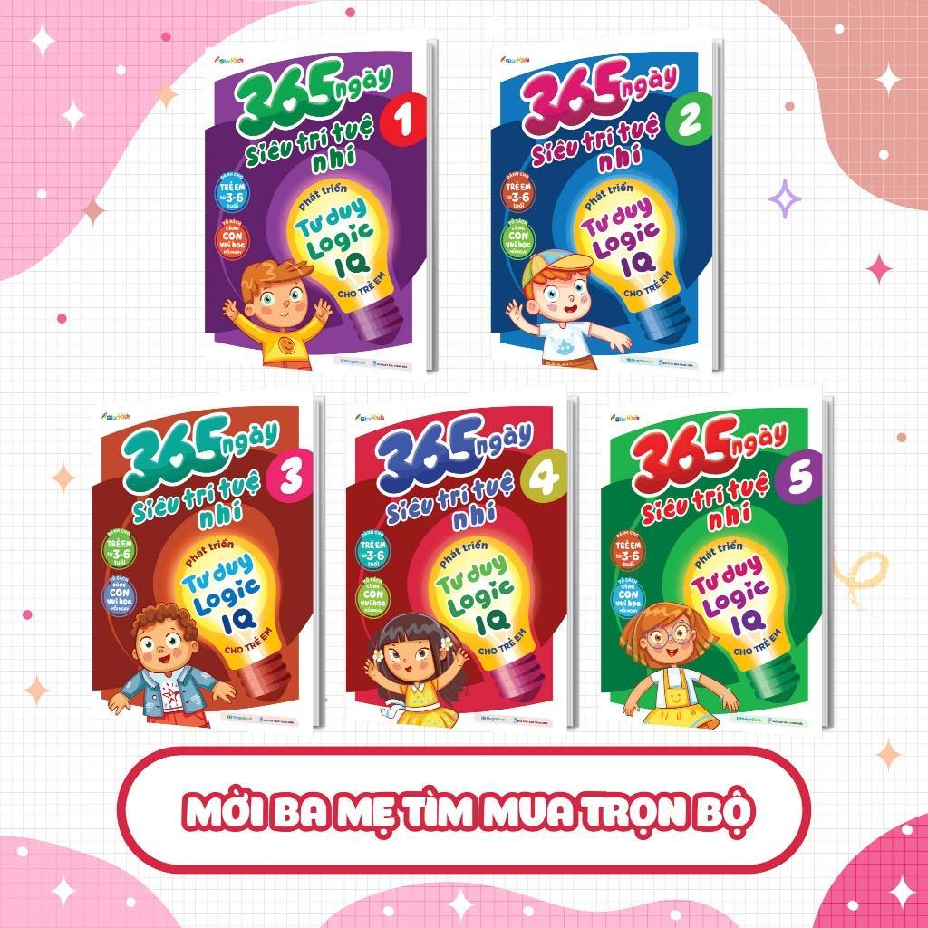 Bộ sách 365 ngày siêu trí tuệ nhí - Phát triển tư duy logic IQ cho trẻ em gồm 5 cuốn dành cho trẻ em từ 3-6 tuổi, giúp trẻ phát triển tư duy logic IQ, hình thành nên nhiều năng lực thực tế như học tập, suy nghĩ, sáng tạo và giải quyết vấn đề, kích thích cho trẻ phát triển một cách tối đa từ khả năng tưởng tượng, phán đoán, suy luận và cả nhận thức.