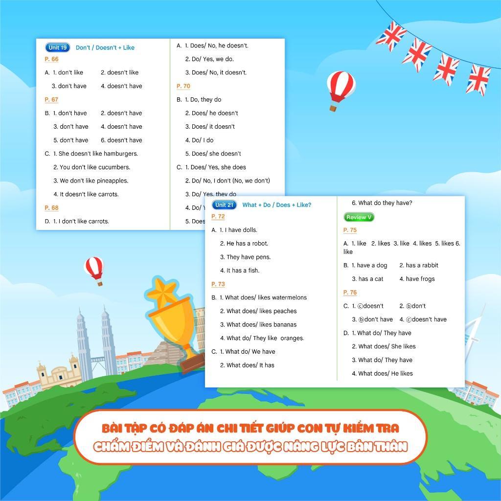 Bài tập có đáp án chi tiết giúp con tự kiểm tra, chấm điểm và đánh giá được năng lực bản thân
