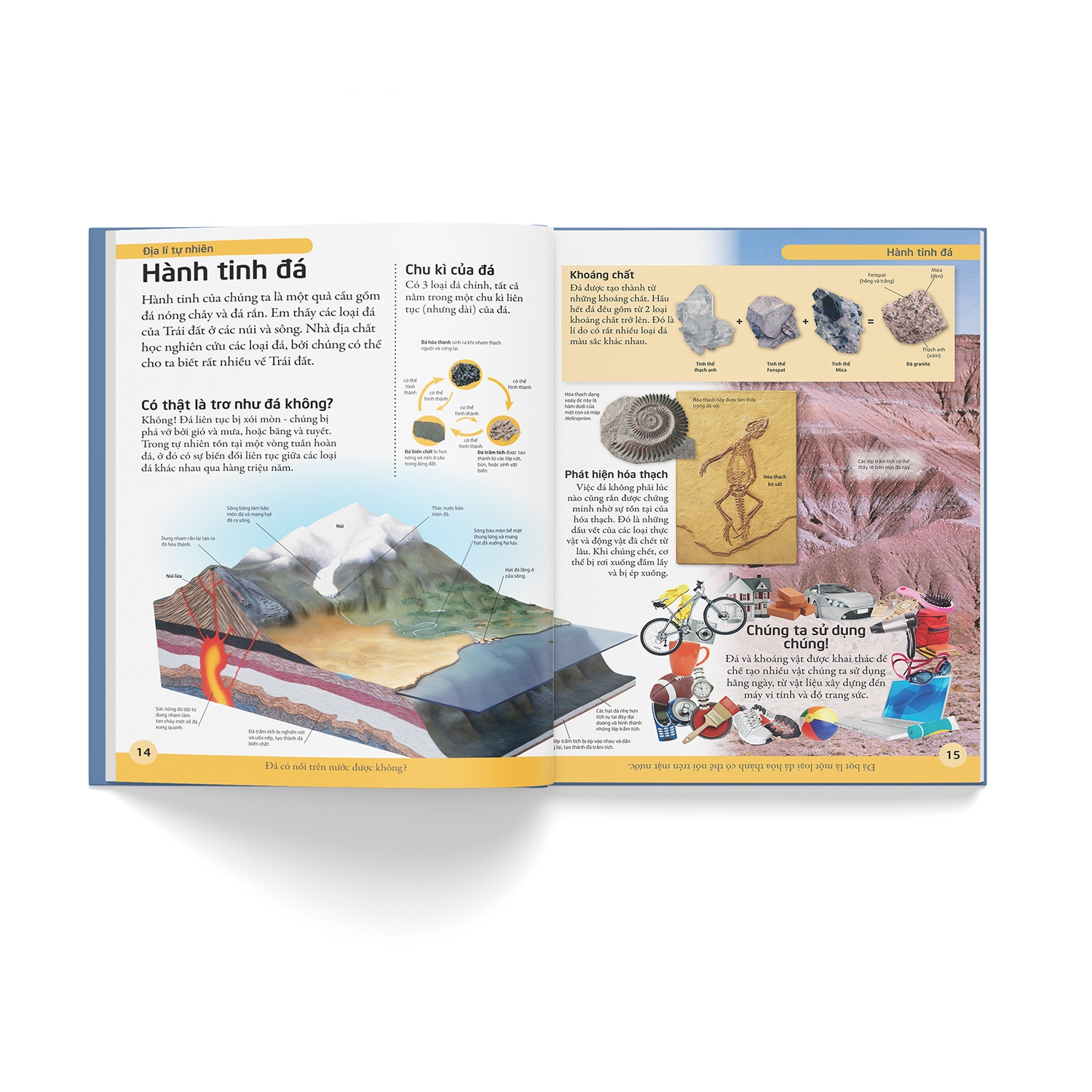 Mua tại TiktokTrái đất là ngôi nhà của con người cùng rất nhiều sinh vật khác, nhưng em biết được bao nhiêu về hành tinh này và những hoạt động diễn ra trên đó? Bách khoa địa lí sẽ đưa em vào hành trình khám phá Trái đất thân yêu của chúng ta. Với các hình minh họa trực quan sinh động, bắt mắt, cuốn sách cung cấp một lượng kiến thức phong phú, súc tích, dễ hiểu, và những câu hỏi vui, mẩu thông tin thú vị về địa lí. Em được biết về cấu tạo của Trái đất, cùng các hiện tượng thiên nhiên diễn ra trên đó, hay những tác động của con người lên hành tinh xanh này. Đến với cuốn sách, em còn được thăm thú những kì quan thiên nhiên và nhân tạo đẹp đẽ và kì vĩ. Hãy đọc sách để thêm yêu và trân trọng hành tinh của chúng ta em nhé!