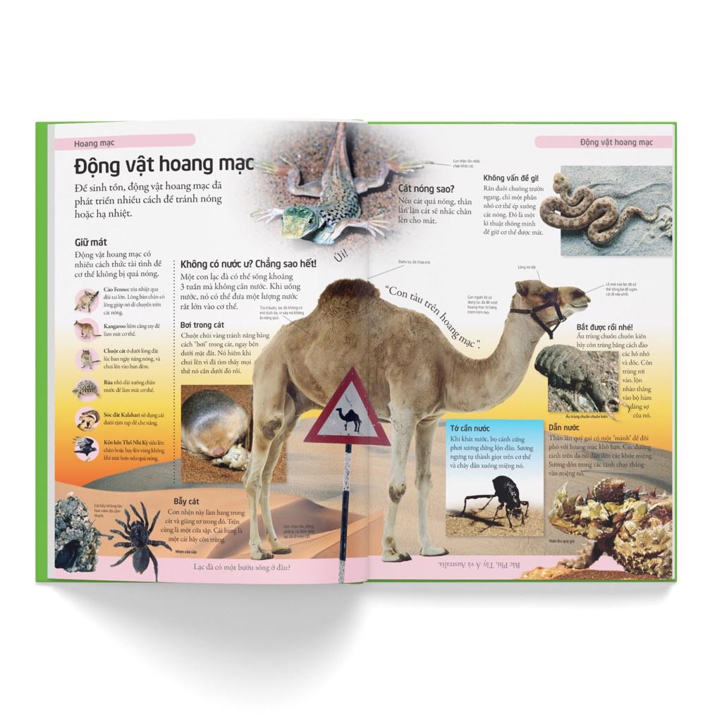 Với các hình minh họa trực quan sinh động, bắt mắt, cuốn sách cung cấp một lượng kiến thức phong phú, súc tích, dễ hiểu, cùng những câu hỏi vui, mẩu thông tin thú vị về thế giới xung quanh. Em sẽ được biết đến cách các loài động thực vật sinh tồn thế nào ở mọi nơi trên Trái đất, từ những hoang mạc khô cằn, tới những cánh rừng mưa tươi tốt.