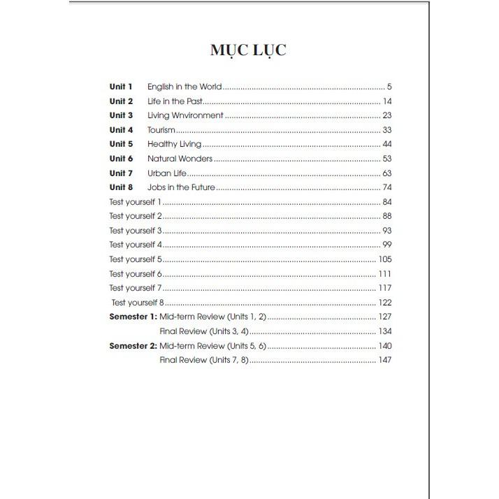 Sách bao gồm rất nhiều dạng bài tập bám sát các chủ đề trong chương trình Tiếng Anh lớp 9 như: English in the World; Life in the Past; Living Environment; Tourism; Healthy Living; Natural wonders; Urban Life; Jobs in the Future,… nhằm giúp các em học sinh ôn luyện các kĩ năng về ngôn ngữ, phát triển vốn từ vựng, củng cố kiến thức ngữ pháp, cũng như nâng cao các kĩ năng phát âm, đọc, nói, và viết.