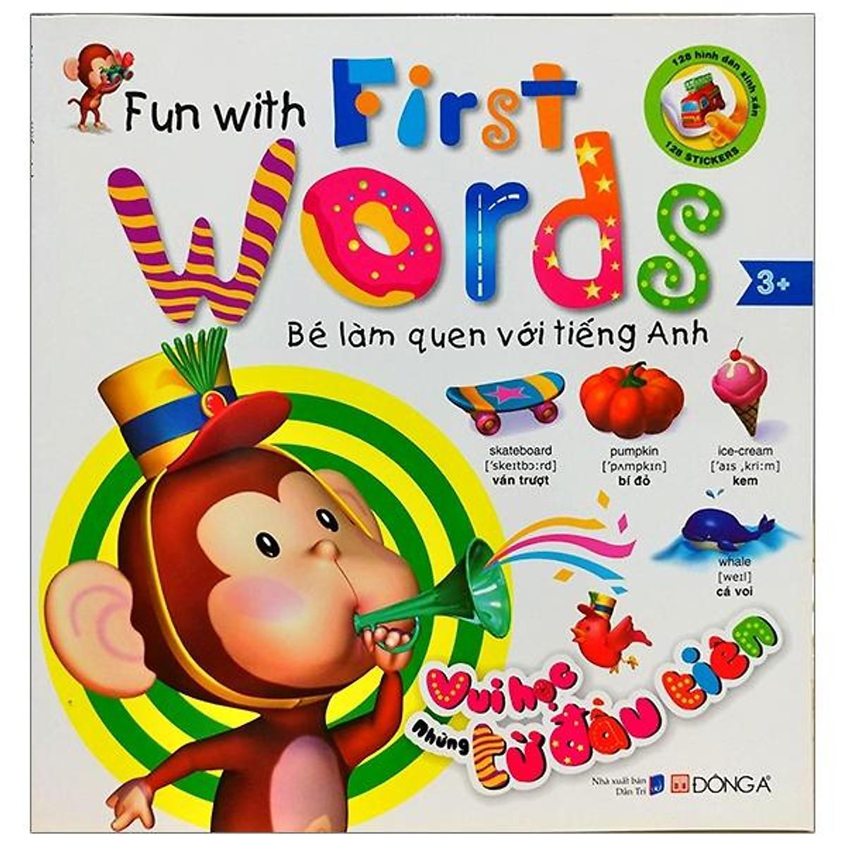 Vui học từ đầu tiên: Với bộ sách này bé sẽ được làm quen với Mony và Bunji - hai bạn nhỏ sẽ giúp các bé nhận biết các từ tiếng Anh chỉ đồ vật, sự vật quen thuộc trong cuộc sống hàng ngày. Lật giở mỗi trang sách, Mony và Bunji sẽ lần lượt giới thiệu cho các bé các từ cơ bản theo từng lĩnh vực: ăn uống, rau quả, hoa, con vật, thể thao, trò chơi, hình dạng, nhạc cụ, số đếm… Những từ này được in với cỡ chữ to dễ đọc và được chia thành 14 nhóm kèm theo 128 hình minh họa đẹp, sinh động giúp bé dễ dàng ghi nhớ từ vựng. Bên cạnh Những từ thú vị, bé còn được tham gia Những trò chơi bổ ích thông qua việc tập suy nghĩ và nhận biết sự vật bằng việc trả lời các câu hỏi hay chơi dán hình với các hình dán ngộ nghĩnh được sắp xếp ở hai trang đầu cuốn sách.Đặc biệt, để việc sử dụng bộ sách được thuận tiện, hiệu quả, ba mẹ sẽ tìm thấy những hướng dẫn vô cùng hữu dụng ở phần Lời khuyên dành cho phụ huynh với các chỉ dẫn về cách thức dạy bé học, bé đọc và phần Phát âm để bé hiểu cách đọc, cách nhấn mạnh từ ra sao trước các ký hiệu (') hay (). Sách dành cho các bé từ 3 tuổi trở lên.