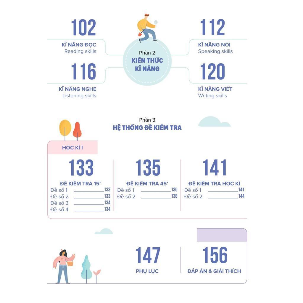 "Trăm hay không bằng tay quen", đó là lí do vì sao học sinh cần phải thực hành luyện tập rất nhiều lần thì mới có thể nắm vững kiến thức và thành thạo kĩ năng. Xuất phát từ nhu cầu đó, các chuyên gia đã biên soạn hệ thống đề bài kiểm tra giúp học sinh tư kiểm chứng mức độ ghi nhớ, hiểu và vận dụng kiến thức đã học của mình. Các đề kiểm tra bám sát hình thức thi của chương trình giáo dục phổ thông, gồm đề kiểm tra 15 phút, đề kiểm tra giữa kì và đề kiểm tra cuối kì. Các câu hỏi trong đề kiểm tra được sắp xếp theo các mức độ đạt được theo thang Bloom. Học sinh được thực hành song song với việc học lí thuyết, bởi vậy kiến thức không thể trôi đi một cách lãng phí. Bên cạnh đó, cuốn sách cung cấp lời giải chi tiết cho mỗi đề kiểm tra. Ở đây, học sinh không chỉ tự đánh giá được tính đúng sai trong bài làm của mình mà còn hiểu được bản chất của vấn đề: tại sao lại chọn đáp án này, dựa vào lí thuyết, cấu trúc nào, những đáp án còn lại sai ở đâ Nhờ vậy, học sinh một lần nữa nắm chắc lí thuyết và vận dụng dễ dàng hơn cho các dạng bài tương tự sau này.