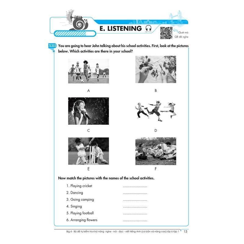 Big 4 Bộ Đề Tự Kiểm Tra 4 Kỹ Năng Nghe – Nói – Đọc – Viết (Cơ Bản và Nâng Cao) Tiếng Anh Lớp 6 Tập 2 viết theo chuẩn khung chương trình mới của Bộ Giáo Dục và Đào Tạo giúp các em học sinh lớp 6 củng cố và phát triển toàn diện các kỹ năng: Nghe – Nói – Đọc – Viết Tiếng Anh.
