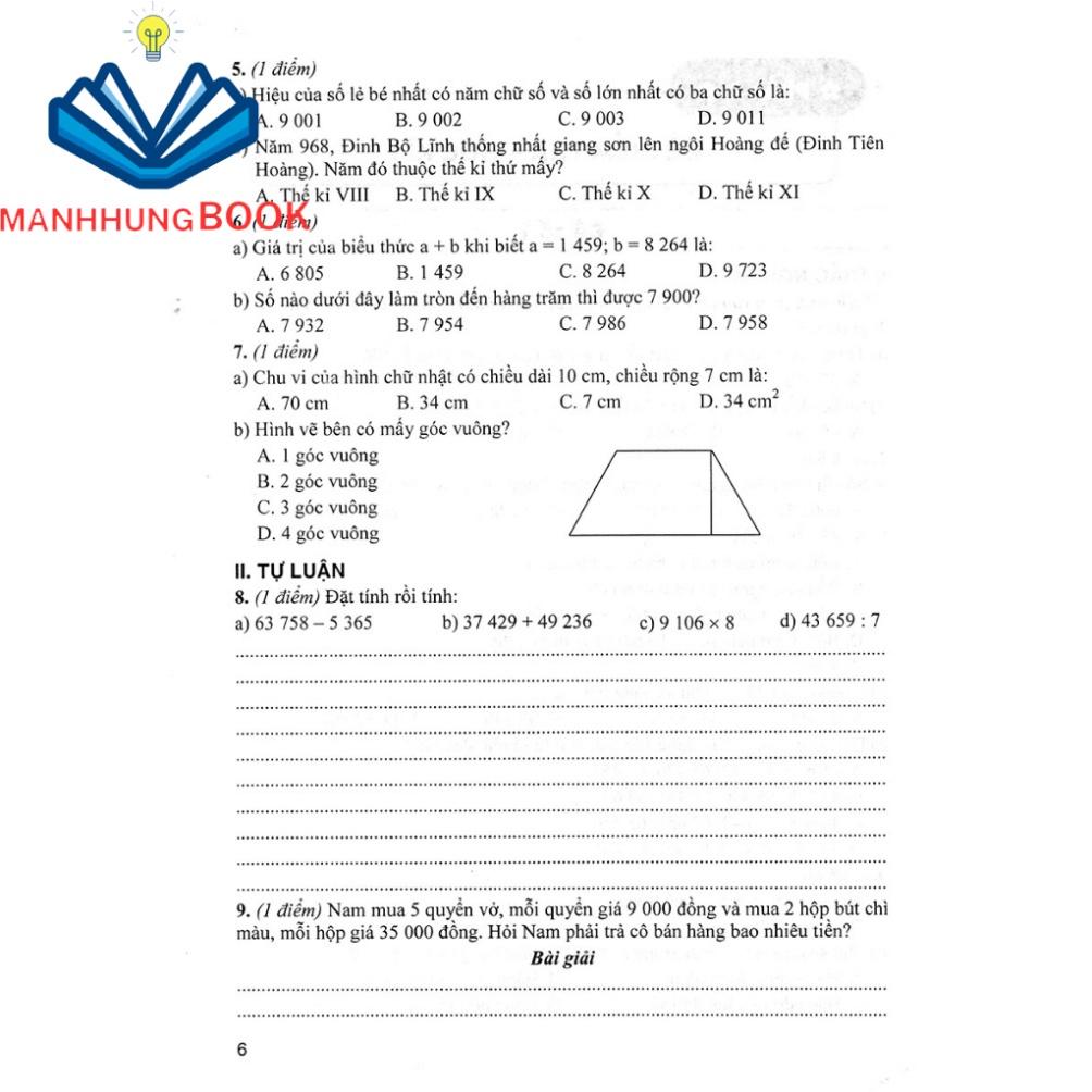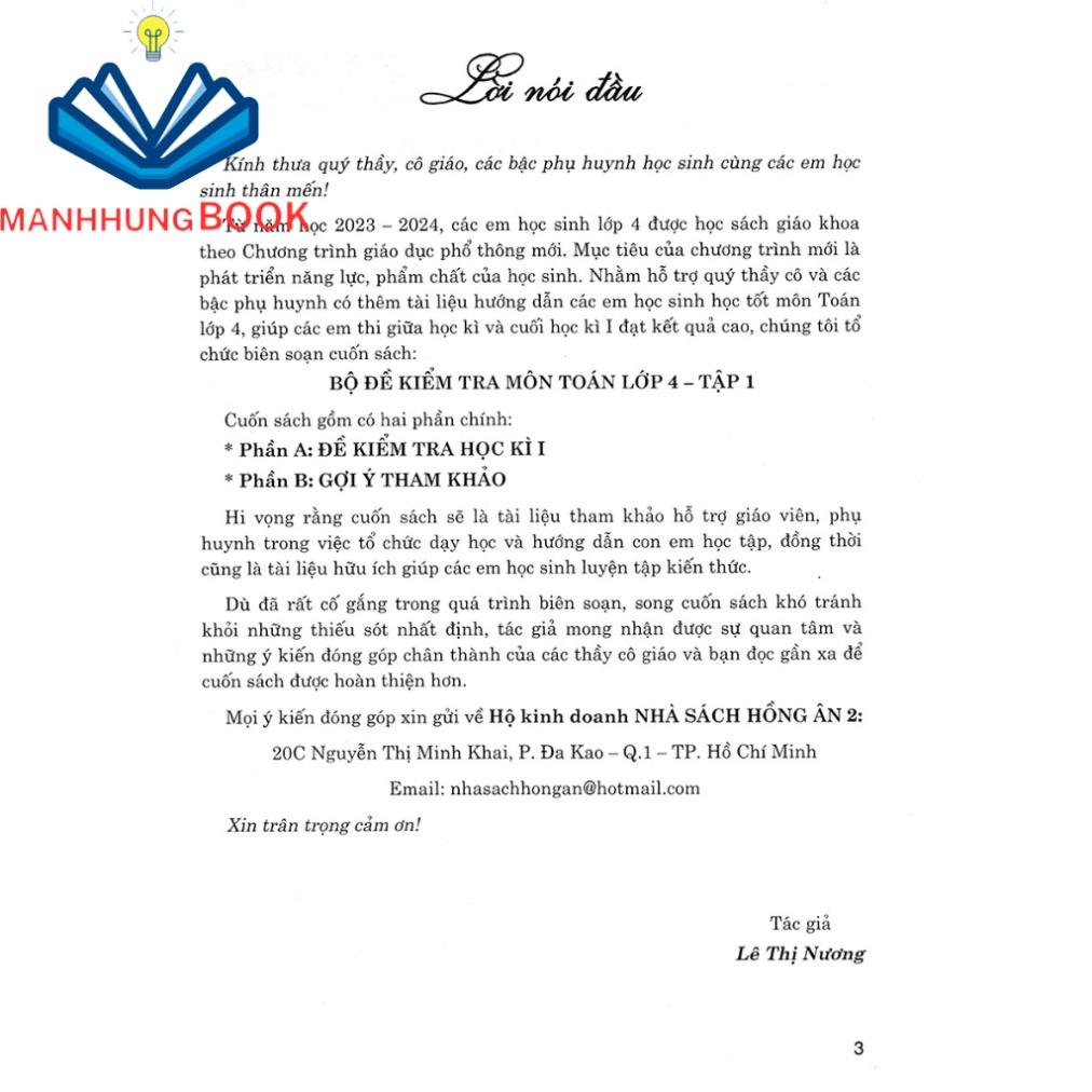 Từ năm học 2023 – 2024, các em học sinh lớp 4 được học sách giáo khoa theo Chương trình giáo dục phổ thông mới. Mục tiêu của chương trình mới là phát triển năng lực, phẩm chất của học sinh. Nhằm hỗ trợ quý thầy cô và các bậc phụ huynh có thêm tài liệu hướng dẫn các em học sinh học tốt môn Toán lớp 4, giúp các em thi giữa học kì và cuối học kì I đạt kết quả cao, chúng tôi tổ chức biên soạn cuốn sách:
