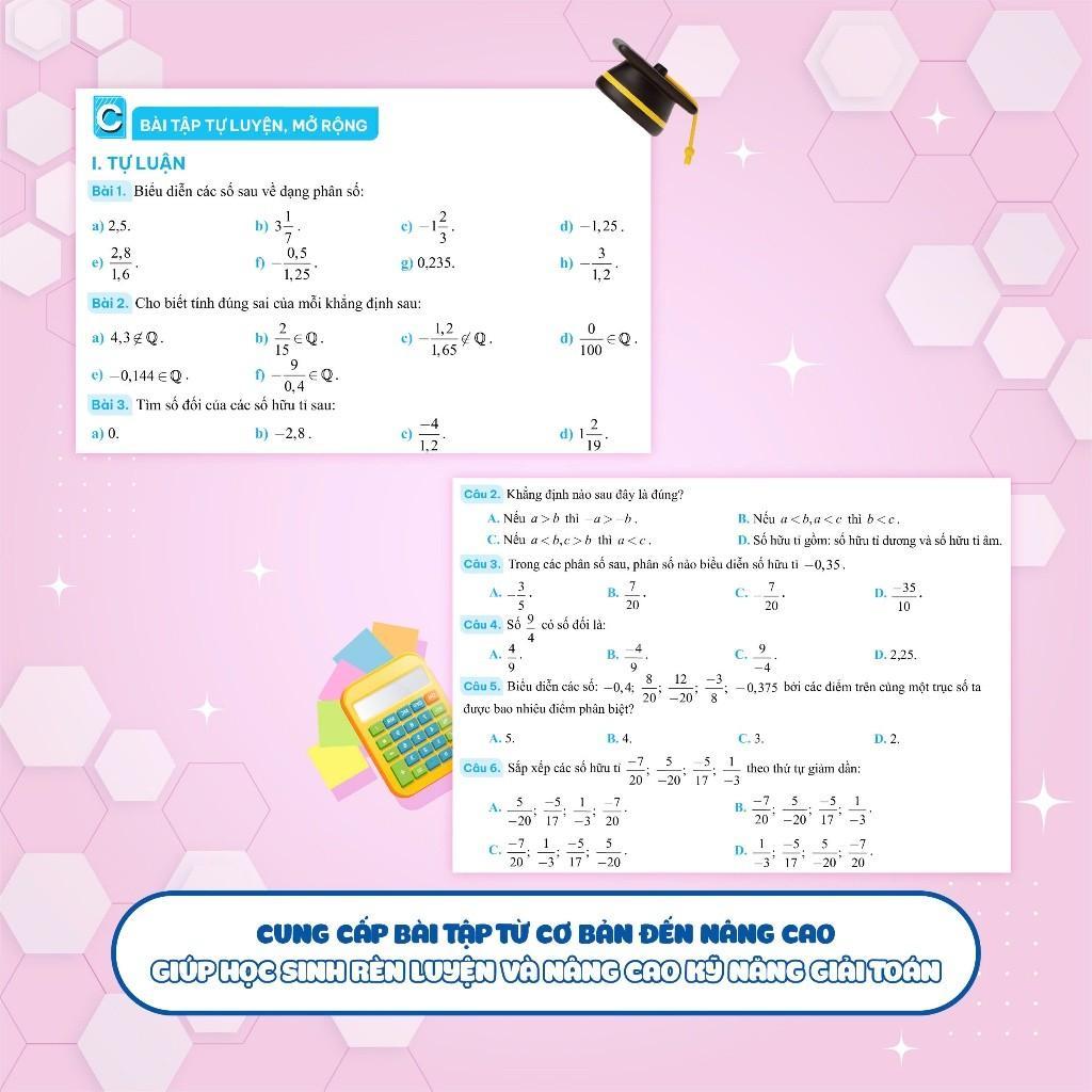 - Bài tập vận dụng đa dạng từ cơ bản đến nâng cao Bổ sung thêm bài tập tự luyện từ cơ bản đến nâng cao, mở rộng theo nội dung của mỗi bài học, giúp các em tự rèn luyện và trau dồi thành thục kỹ năng giải các dạng toán từ dễ đến khó.