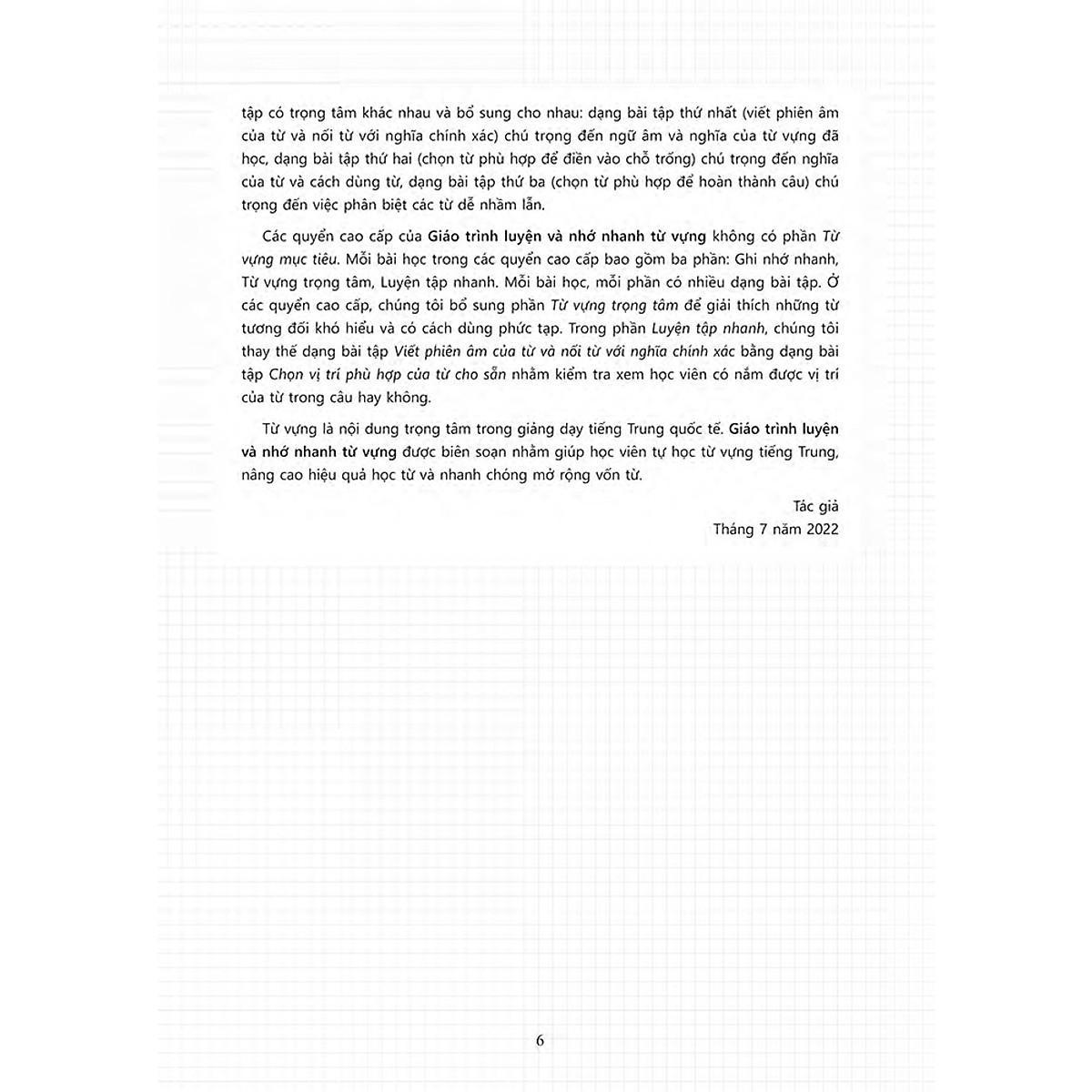 Giáo trình luyện và nhớ nhanh từ vựng giới thiệu toàn bộ từ vựng trong Bảng từ vựng của Bộ tiêu chuẩn phân cấp trình độ giáo dục Trung văn quốc tế. Bộ sách gồm