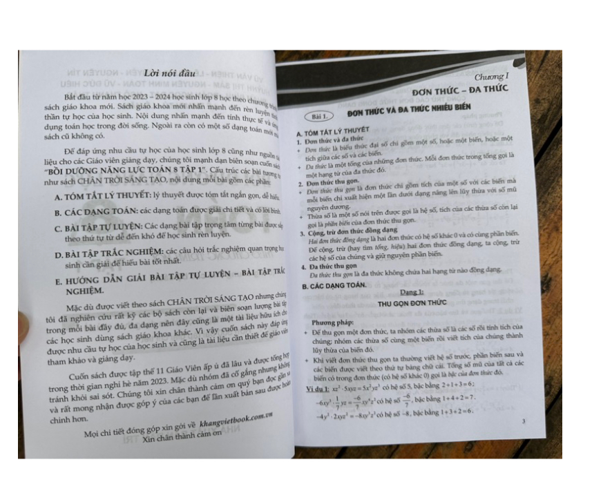 phân Loại Và Giải Chi Tiết Các Dạng Bài Tập Toán Lớp 8 - Tập 1 + tập 2 Nội dung của mỗi tiết học đó là các định nghĩa, các công thức toán học,