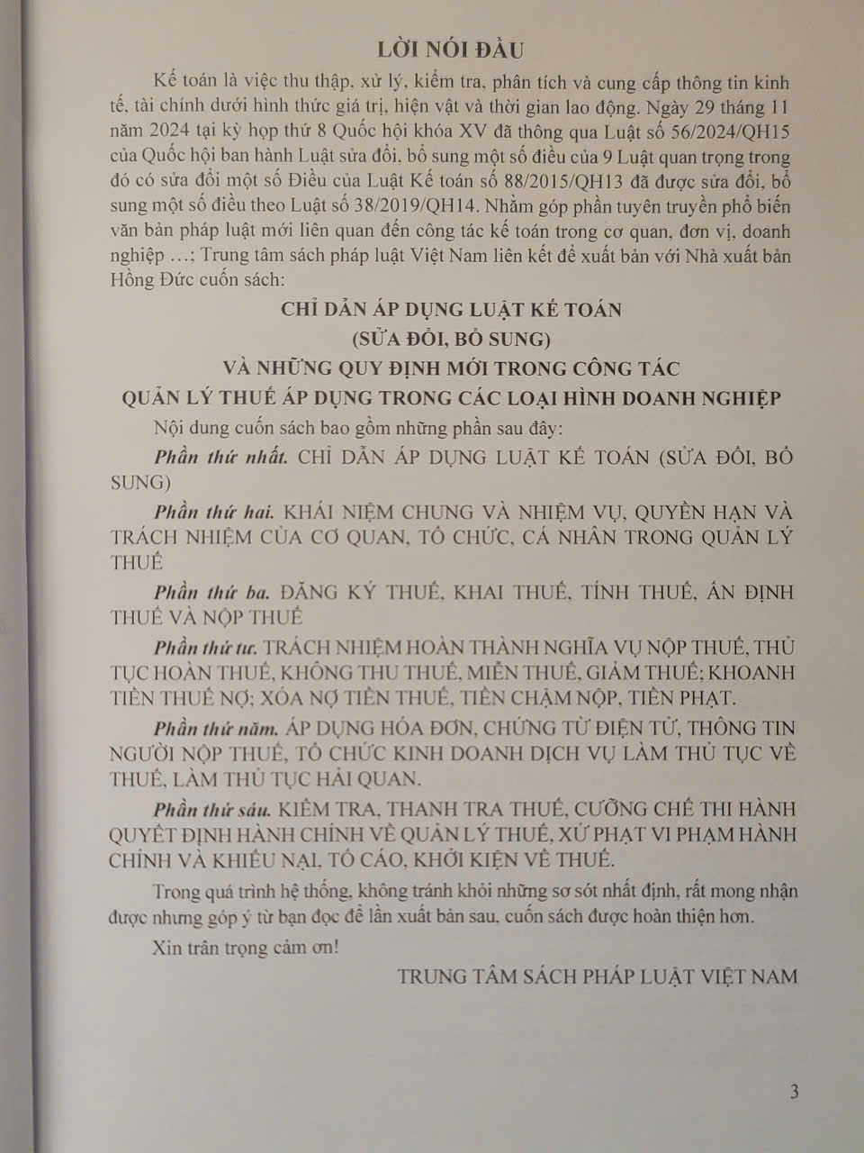 Sách Chỉ Dẫn Áp Dụng Luật Kế Toán sửa đổi, bổ sung 2024 - Và Những Quy Định Mới Trong Công Tác Quản Lý Thuế Áp Dụng Trong Các Loại Hình Doanh Nghiệp