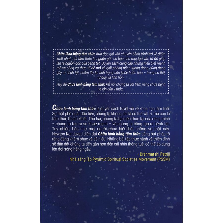 "Chữa Lành Bằng Tâm Thức là quyển sách tuyệt vời về khoa học tâm linh. Sự thật phổ quát đầu tiên, chúng ta không chỉ là cơ thể vật lý, mà còn là tâm thức thuần khiết. Thứ hai, chúng ta tạo nên thực tại của riêng mình - chúng ta tạo ra sự khỏe mạnh - và chúng ta cũng tạo ra bệnh tật. Tuy nhiên, hầu như mọi người chưa hiểu hết những sự thật này. Newton Kondaveti diễn đạt Chữa Lành Bằng Tâm Thức bằng bút pháp rõ ràng đáng khâm phục và dễ hiểu. Những bài tập thực hành và thiền định sẽ dẫn dắt chúng ta tiến gần hơn đến cái nhìn thông tuệ, có thể áp dụng lên đời sống hằng ngày."