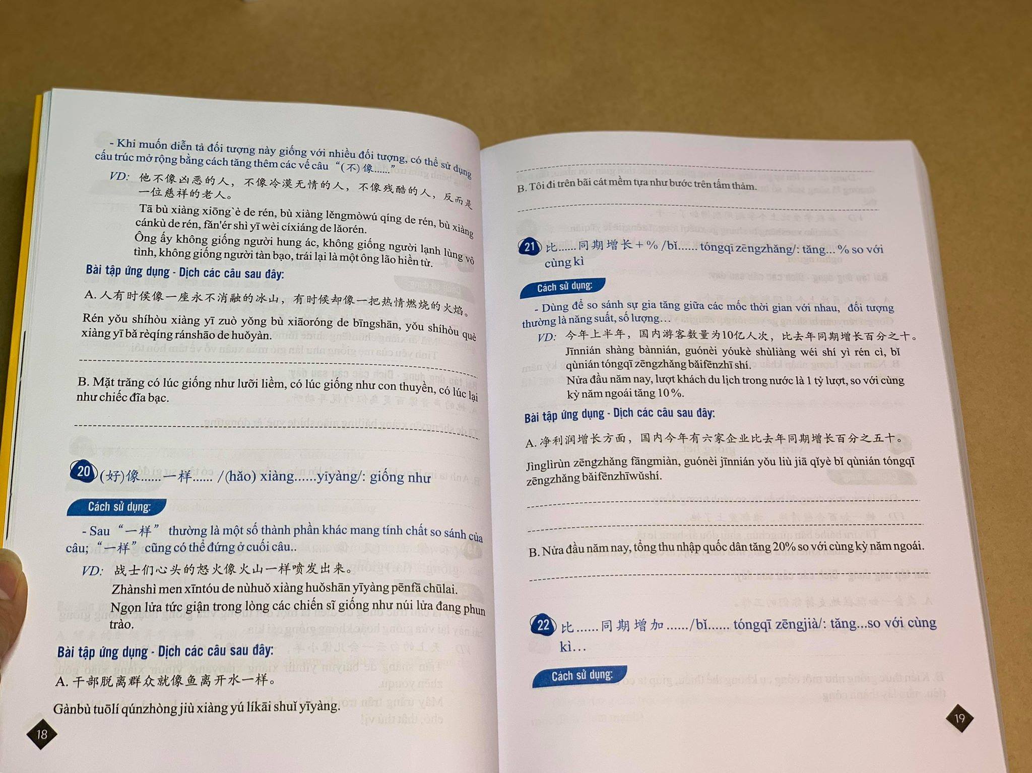 - ĐẶC_TRƯNG_NỔI_BẬT Sách với lối viết ngắn gọn, cụ thể, chia nhỏ các điểm thành từng cấu trúc tách biệt để người tự học hoàn toàn có thể hiểu và ứng dụng nhanh chóng. Sách là sự kết hợp giữa kinh nghiệm của tác giả Việt Nam và sự am hiểu sâu sắc về tiếng mẹ đẻ của tác giả Trung Quốc, đảm bảo hoàn toàn có thể tin tưởng được về độ chính xác. Sách đi đúng tinh thần hỗ trợ tối đa nên có ví dụ, tất cả chữ Hán xuất hiện đều có phiên âm giúp các bạn nhận thức cách đọc và tích lũy thêm từ vựng.