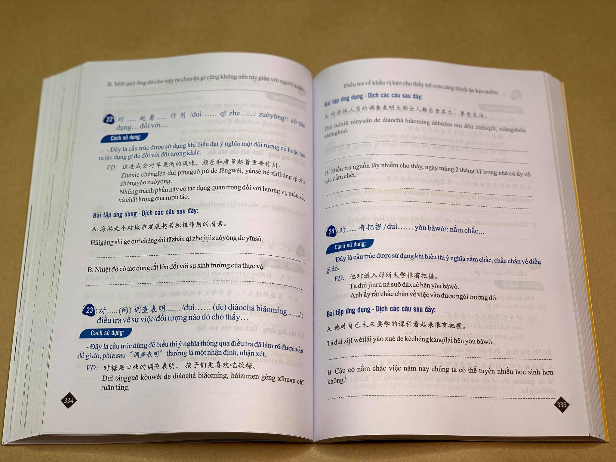 - NỘI_DUNG Tuyển tập gần 600 cấu trúc ngữ pháp, câu trúc cố định ứng dụng thực tiễn 100% trong đời sống, văn nói và văn viết, dịch thuật ( Đã được kiểm duyệt kỹ bởi chuyên gia ngôn ngữ Trung Quốc). Sách có kèm thêm ví dụ, bài tập và đáp án tham khảo. Phù hợp với các đối tượng từ sơ đến cao cấp ( mới học từ Hán ngữ 1, Boya1 đến trình độ cao biên phiên dịch đều có thể sử dụng được)