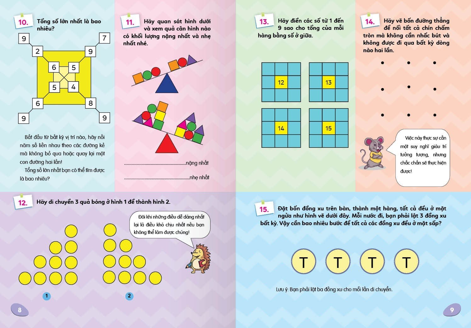 Các câu đố được thiết kế với mức độ từ dễ đến khó, thử thách người đọc ở nhiều mức độ khác nhau và giúp tăng cường kỹ năng tư duy toán học trong nhiều tình huống.