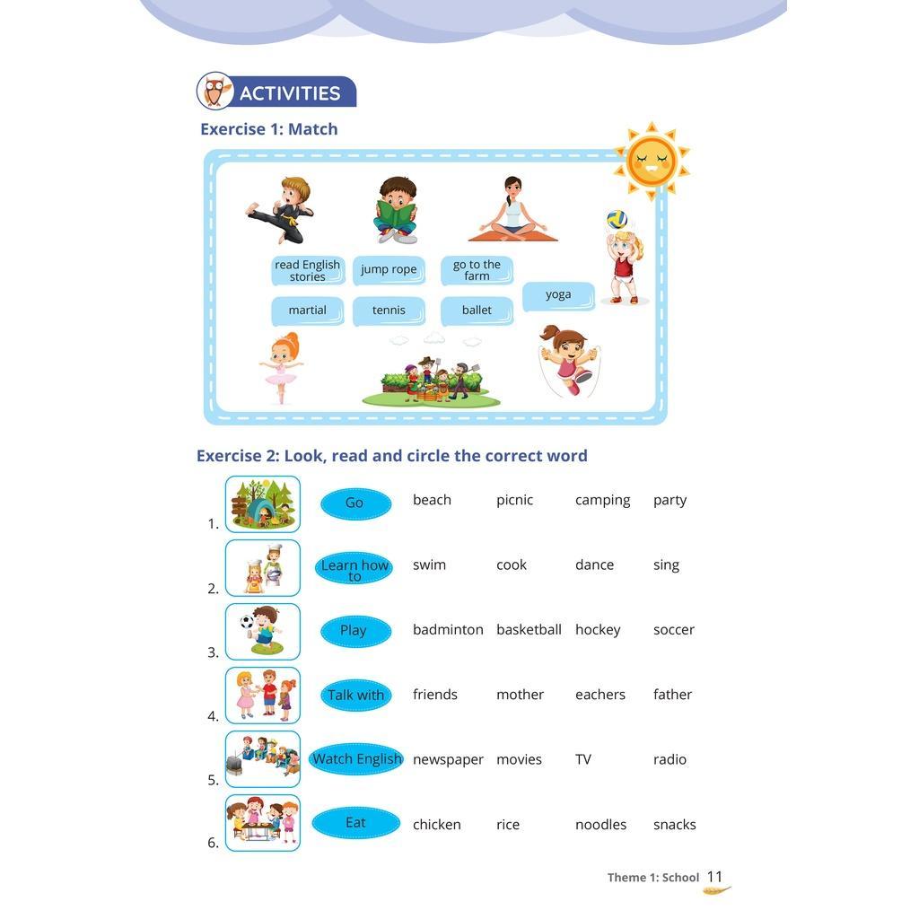 - Bổ sung nhiều bài tập thực hành giúp bé ôn tập, ghi nhớ và vận dụng các từ vựng đã được học sau mỗi Theme.