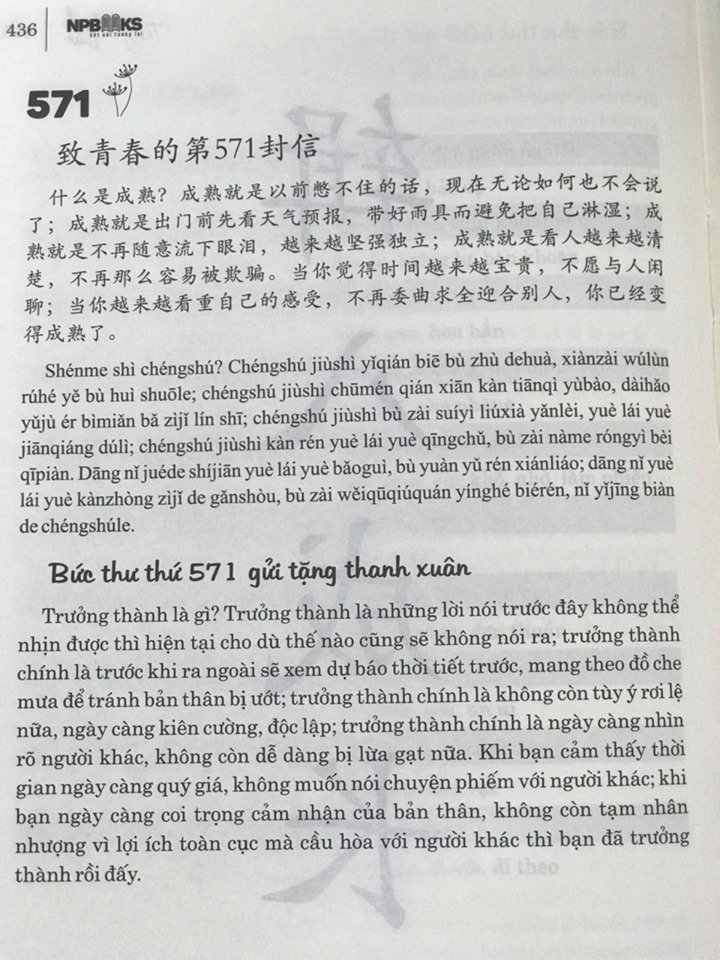 [NP BOOKS] Review sách thư gửi thanh xuân - Song ngữ Trung Việt có phiên âm