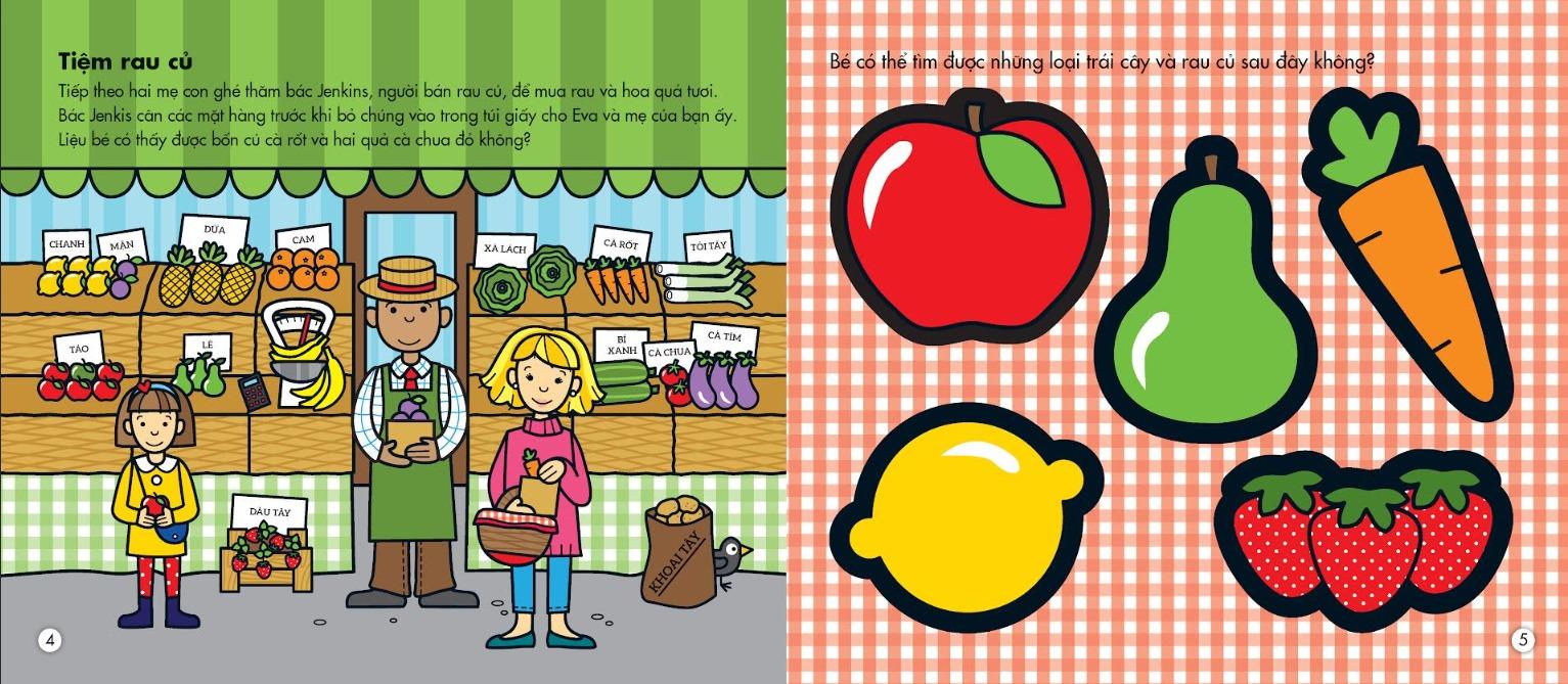 Mua sắm là một trải nghiệm hết sức thú vị, được tham gia vào trải nghiệm mua sắm trong cuốn sách này, bé sẽ trở nên đảm đang hơn. Bé còn có kĩ năng chăm sóc bản thân tốt hơn khi đã nắm vững kiến thức về các loại thực phẩm, trái cây, rau củ và các loại bánh. Chúng vừa thơm ngon vừa có nhiều dinh dưỡng, tốt cho sức khỏe của bé.