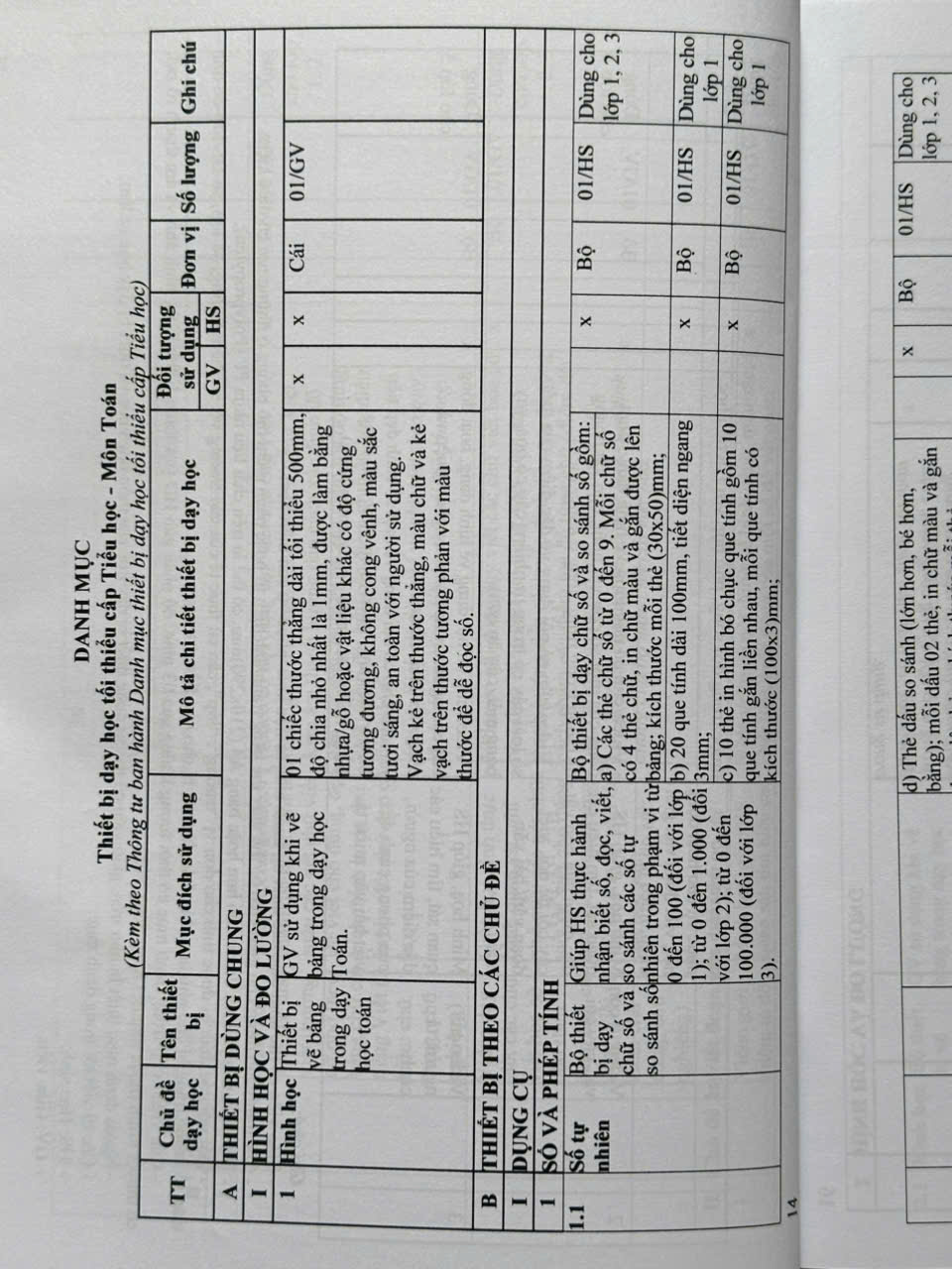 Sách Danh Mục Thiết Bị Dạy Học Tối Thiểu Trong Nhà Trường