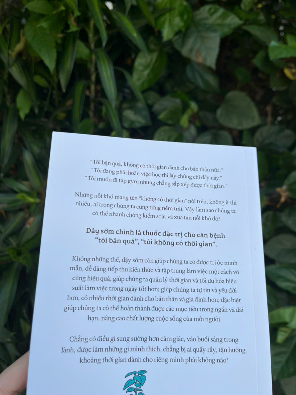 Tác giả: Tsukamoto Ryo Dịch giả: Phương Quyên Nhà xuất bản: Công Thương Kích thước:14 x 20.5cm Số trang: 168 Ngày phát hành: 2024 Giới thiệu sách “Tôi bận quá, không có thời gian dành cho bản thân nữa." “Tôi đang phải hoãn việc học thi lấy chứng chỉ đây này.” “Tôi muốn đi tập gym nhưng chẳng sắp xếp được thời gian.” Những nỗi khổ mang tên “không có thời gian" nói trên, không ít thì nhiều, ai trong chúng ta cũng từng nếm trải. Vậy làm sao chúng ta có thể nhanh chóng kiểm soát và xua tan nỗi khổ đó Dậy sớm chính là thuốc đặc trị cho căn bệnh “tôi bận quá”, “tôi không có thời gian”. Không những thế, dậy sớm còn giúp chúng ta có được trí óc minh mẫn, dễ dàng tiếp thu kiến thức và tập trung làm việc một cách vô cùng hiệu quả, giúp chúng ta quản lý thời gian và tối ưu hóa hiệu suất làm việc trong ngày tốt hơn; giúp chúng ta tự tin và yêu đời hơn, có nhiều thời gian dành cho bản thân và gia đình hơn; đặc biệt giúp chúng ta có thể hoàn thành được các mục tiêu trong ngắn và dài hạn, nâng cao chất lượng cuộc sống của mỗi người. Chẳng có điều gì sung sướng hơn cảm giác, vào buổi sáng trong lành, được làm những gì mình thích, chẳng bị ai quấy rầy, tận hưởng khoảng thời gian dành cho riêng mình phải không nào?