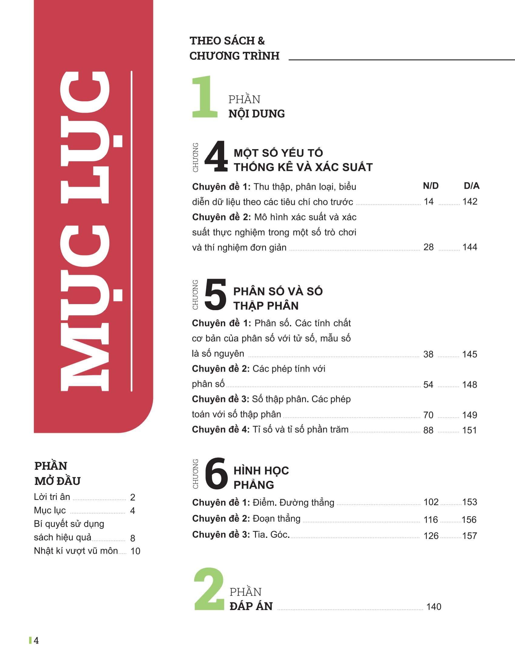 Được biên soạn dựa trên chương trình mới môn Toán lớp 6, sách giúp bạn nắm vững kiến thức cốt lõi, đồng hành cùng bạn xuyên suốt quá trình học để tự tin bước vào các kì thi quan trọng. Sách giúp bạn xây dựng một lộ trình và kế hoạch học tập rõ ràng, đặt mục tiêu, thêm quyết tâm để tiến bộ từng ngày.