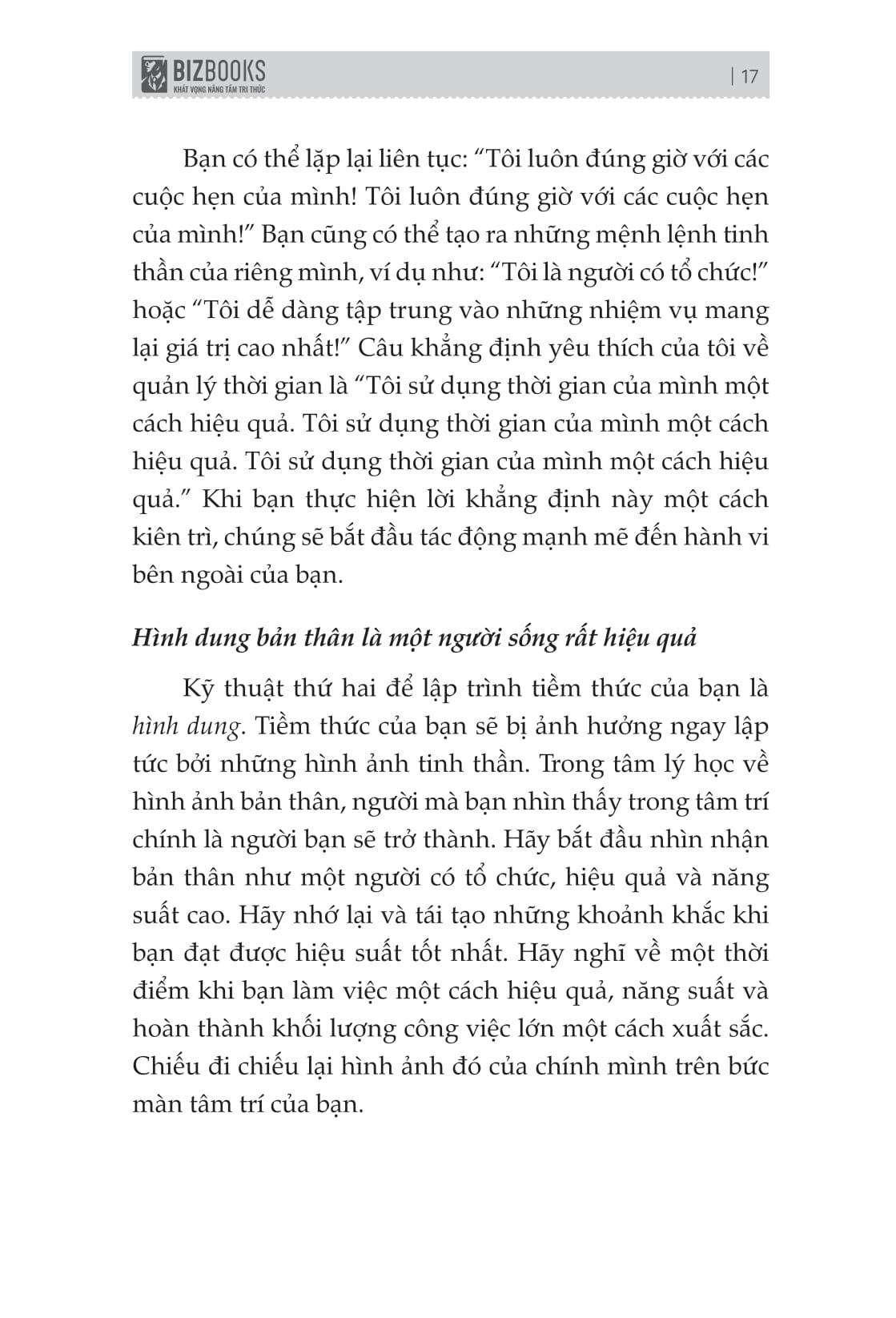 thông qua 10 chương sách, brian tracy dẫn dắt bạn từng bước nhìn lại lịch trình của chính m.ình như một kiến trúc sư nhìn lại sơ đồ doanh nghiệp.