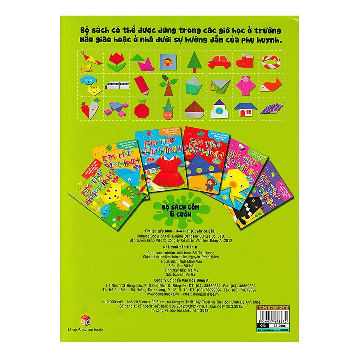 Tập gấp hình bằng giấy là một trò chơi thú vị mà các bậc phụ huynh thường chơi cùng con. Bé sẽ rất thích thú khi chính tay xếp được những hình ngộ nghĩnh, dễ thương như con thuyền, bông hoa hay ngôi nhà… Tuy nhiên, không phải cha mẹ nào cũng biết nhiều cách gấp hình để hướng dẫn con hàng ngày. Hiểu được điều đó, Công ty Văn hóa Đông A đã xuất bản bộ sách dạy gấp hình cho trẻ từ 3 – 6 tuổi "Em tập gấp hình" Bộ sách không chỉ là cẩm nang gấp hình cho các bậc phụ huynh mà còn có thể dùng trong các giờ học ở trường mẫu giáo.