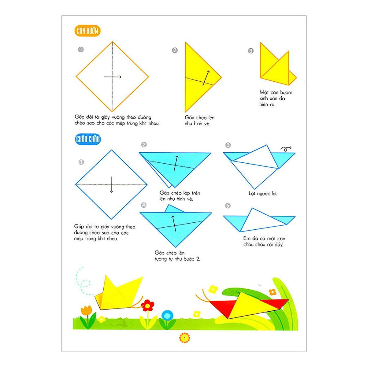 Với từng quyển, bé sẽ học cách gấp những đồ vật, con vật đơn giản nhất, từ phong bao, củ cà rốt… đến những hình phức tạp với nhiều đường gấp, cần nhiều sự tưởng tượng hơn như con cua, giỏ đựng hoa quả, lạc đà Mỗi trang sách là những hướng dẫn tỉ mỉ, bé chỉ cần làm lần lượt theo các bước. Cuối cùng, bé đã có một sản phẩm hoàn thiện với màu sắc sống động, ngộ nghĩnh.