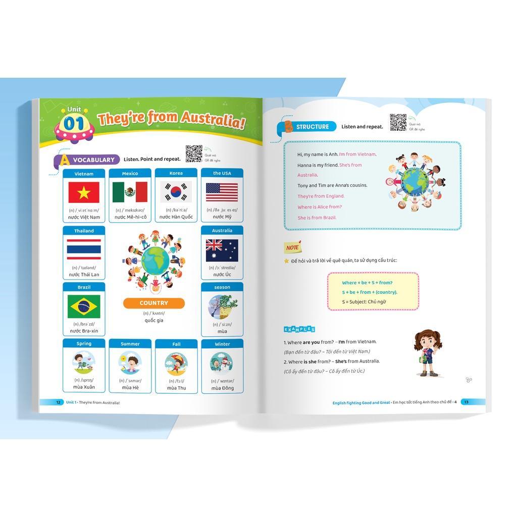 Tiếng Anh là ngôn ngữ vô cùng phổ biến trên thế giới hiện nay và đã được đưa vào chương trình giáo dục hiện hành của nước ta. Tuy nhiên, học ngoại ngữ không phải là một quá trình dễ dàng, nhất là đối với khối Tiểu học – các em học sinh chỉ vừa mới được tiếp xúc với các con chữ. Hiểu được những khó khăn đó, English Fighting Good and Great – Em học tốt tiếng Anh theo chủ đề đã được ra đời.
