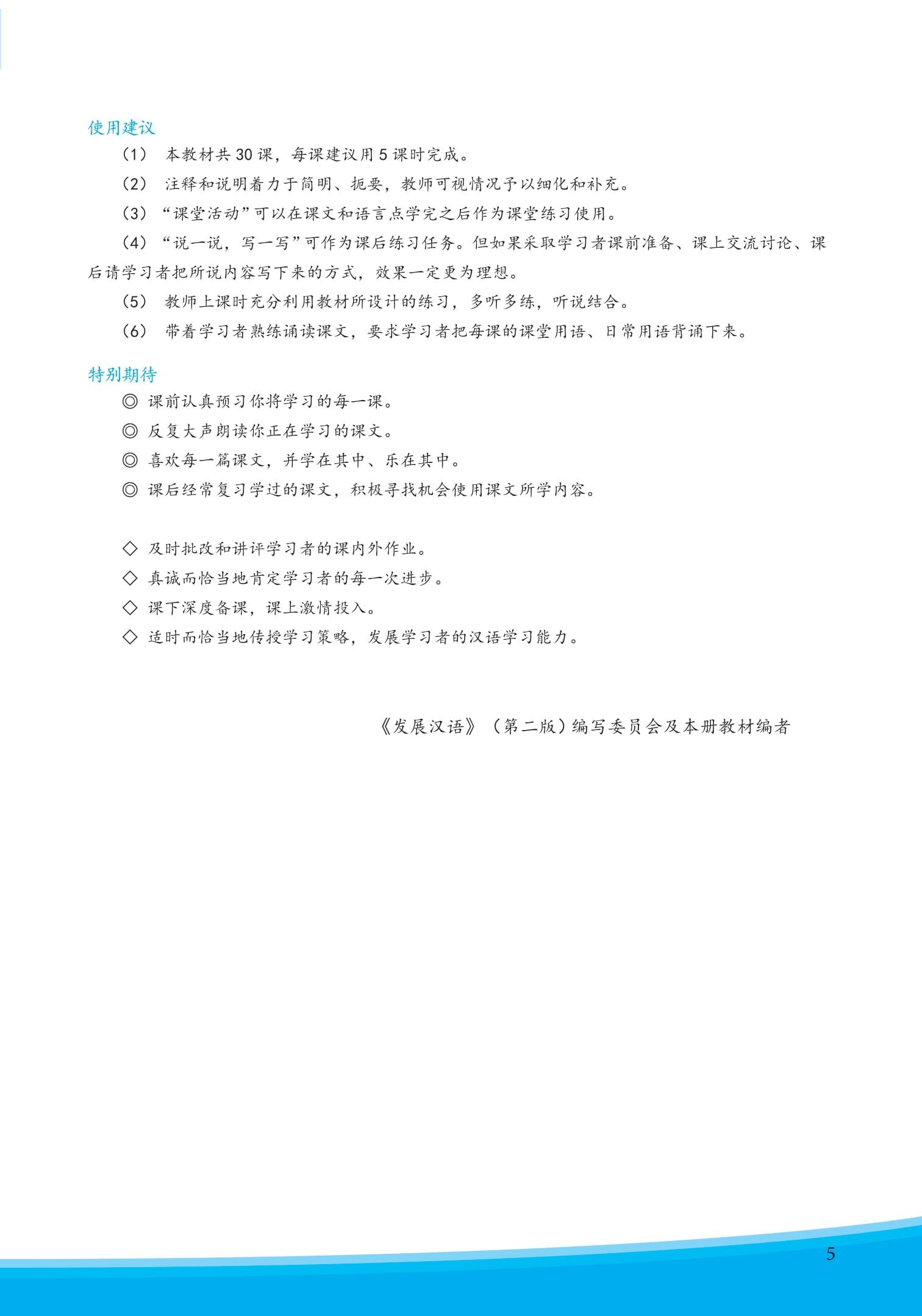Giáo trình Phát triển Hán ngữ tổng hợp sơ cấp 1 chủ yếu dùng cho sinh viên học tiếng Trung Quốc, có thể đáp ứng được yêu cầu giảng dạy của môn học chính ở các cấp độ như sơ cấp (bao gồm mới bắt đầu). Bên cạnh đó, cuốn sách này có thể chọn dùng cho giảng dạy sinh viên chính quy chuyên ngành ngôn ngữ Trung Quốc, cũng có thể dùng cho các khóa bồi dưỡng trong và ngoài nước và cho người tự học tiếng Trung Quốc.