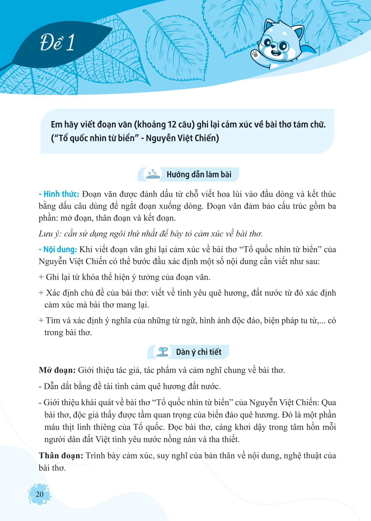 - Phần này ở mỗi bài đều đưa ra những hướng dẫn cụ thể và dàn ý cơ bản để học sinh nắm bắt một cách nhanh nhất và hiệu quả nhất cùng với lưu ý để học sinh đạt điểm tối đa khi viết đoạn và bài vă
