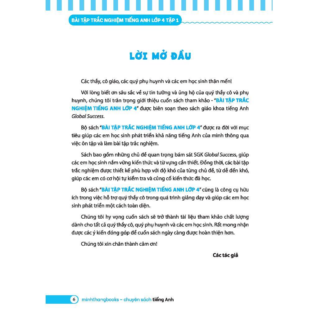 Cuốn sách được biên soạn với sự chung tay của các giáo viên giàu kinh nghiệm từ các trường dựa trên nội dung bám sát sách giáo khoa Tiếng Anh 4 nhằm mục đích hỗ trợ và khuyến khích quá trình tự học, tự ôn luyện của học sinh.
