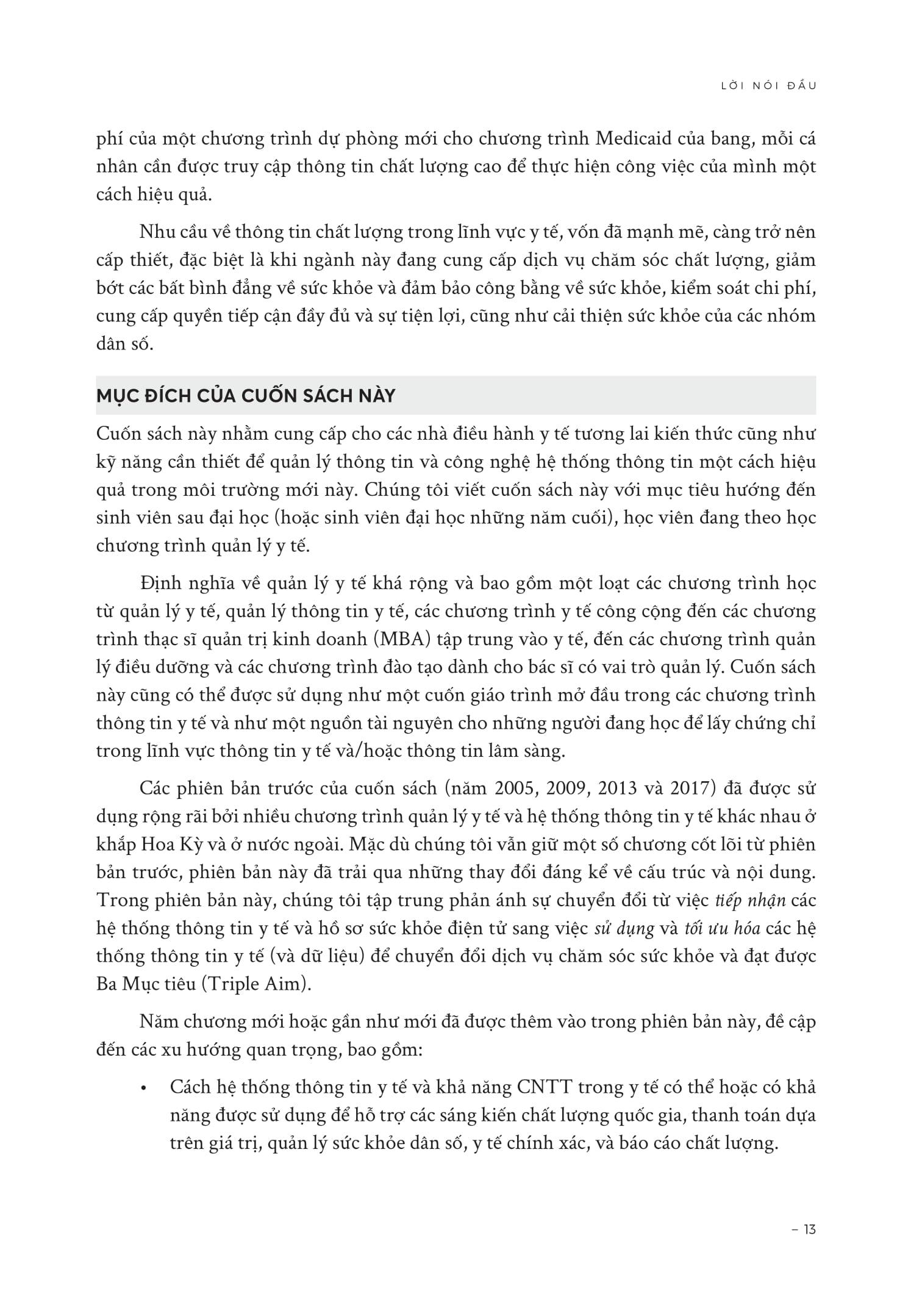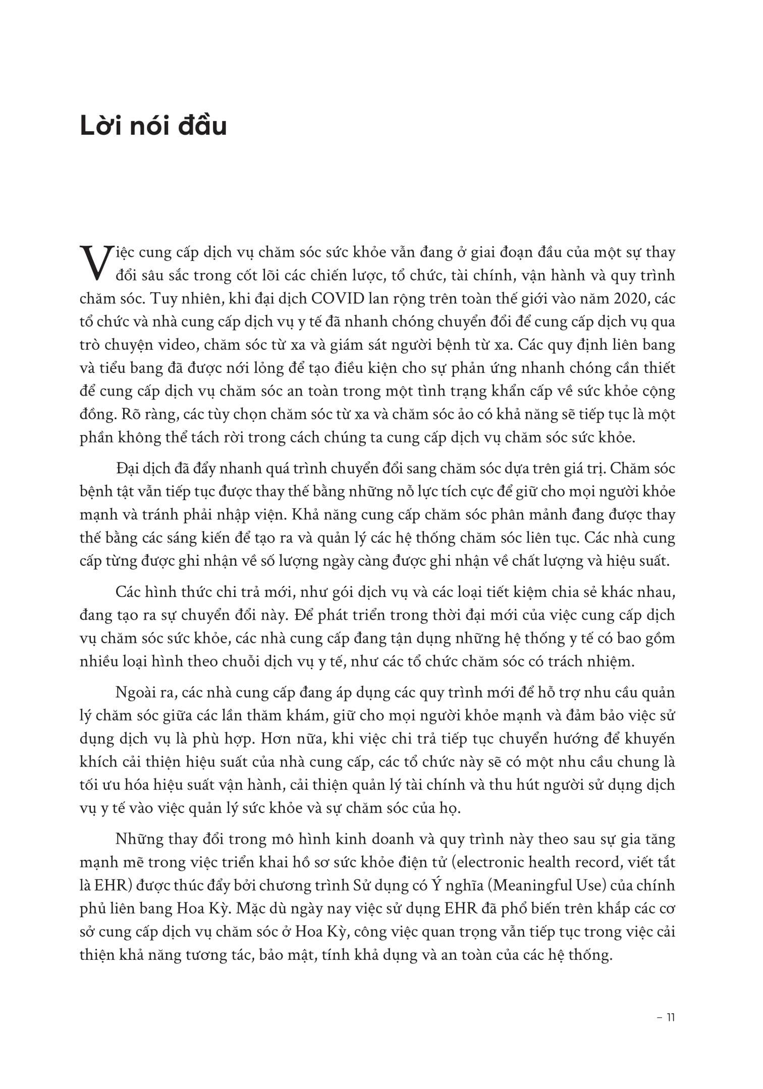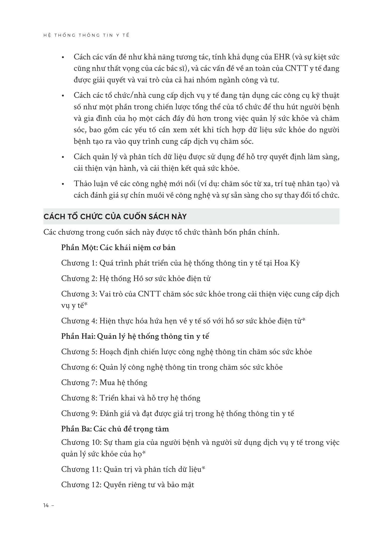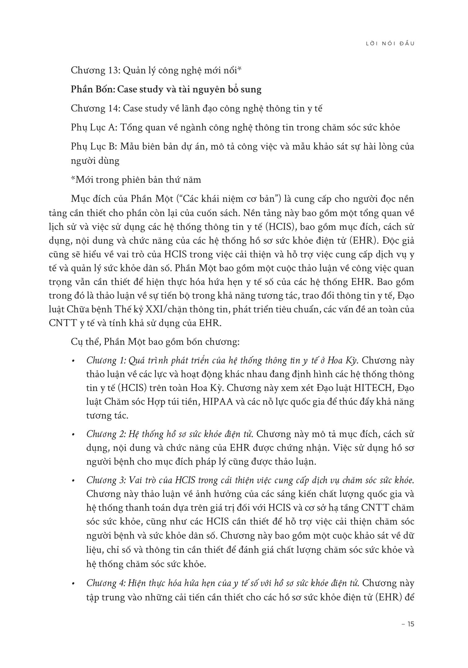 • Các nghiên cứu điển hình đầy đủ và các tài nguyên bổ sung, chẳng hạn như hồ sơ dự án mẫu và tổng quan về ngành công nghệ thông tin chăm sóc sức khỏe Cuốn sách này là một tài liệu tham khảo không thể thiếu, một bản hướng dẫn toàn diện và trực quan về quản lý thông tin và công nghệ thông tin trong chăm sóc sức khỏe, góp phần hỗ trợ các đơn vị y tế phát triển hệ thống thông tin y tế hiện đại, hiệu quả, bền vững.