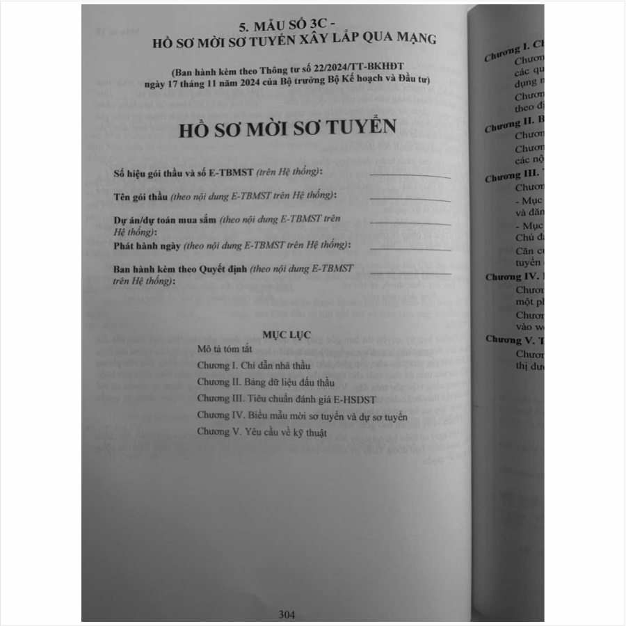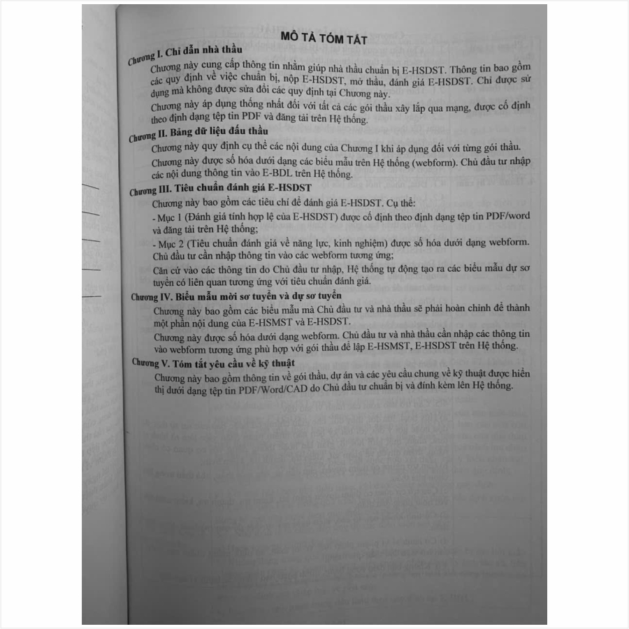 - Toàn bộ sách bìa mềm khổ lớn 20 x 28 cm phân phối bởi Nhà sách Nam Việt đều được bọc sách Plastic MIỄN PHÍ và xuất hóa đơn điện tử đầy đủ, nhanh chóng. …/… Lời giới thiệu: Ngày 17/11/2024, Bộ Kế hoạch và Đầu tư đã ban hành Thông tư số 22/2024/TT-BKHĐT hướng dẫn việc cung cấp, đăng tải thông tin về lựa chọn nhà thầu và mẫu hồ sơ đấu thầu trên Hệ thống mạng đấu thầu quốc gia. Thông tư 22/2024/TT-BKHĐT là một văn bản pháp luật quan trọng, đánh dấu bước tiến mới trong việc quản lý và điều hành các hoạt động đấu thầu, thúc đẩy việc minh bạch và hiệu quả trong lĩnh vực đấu thầu tại Việt Nam. Thông tư 22/2024/TT-BKHĐT cung cấp 42 mẫu hồ sơ chuẩn hóa (Từ Mẫu 1A tới Mẫu 14D) và 17 phụ lục (Từ Phụ lục 1A- Phụ lục 10), chính thức có hiệu lực từ 01/01/2025 (một phần hiệu lực từ 01/12/2024). Để kịp thời đáp ứng nhu cầu thông tin của các cơ quan, ban, ngành cùng các nhà thầu, nhà đầu tư và đông đảo bạn đọc trong cả nước về các quy định pháp luật mới trong lĩnh vực đấu thầu, Nhà sách Nam Việt xin trân trọng giới thiệu cuốn sách: Hướng Dẫn Cung Cấp, Đăng Tải Thông Tin về Lựa chọn Nhà Thầu và Mẫu Hồ Sơ Đấu Thầu Trên Hệ Thống Mạng Đấu Thầu Quốc Gia - Tuyển Tập Mẫu Hồ Sơ Mời Thầu Xây Lắp (Quyển 1) …//… Nội dung quyển 1 gồm các nội dung sau: MẪU SỐ 3A. Hồ Sơ Mời Thầu Xây Lắp Qua Mạng Một Giai Đoạn Một Túi Hồ Sơ MẪU SỐ 3B. Hồ Sơ Mời Thầu Xây Lắp Qua Mạng Một Giai Đoạn Hai Túi Hồ Sơ MẪU SỐ 3C. Hồ Sơ Mời Sơ Tuyển Xây Lắp Qua Mạng MẪU SỐ 8A. Hồ Sơ Mời Thầu Thiết Kế Và Xây Lắp (EC) Qua Mạng Một Giai Đoạn Một Túi Hồ Sơ MẪU SỐ 8B. Hồ Sơ Mời Thầu Thiết Kế Và Xây Lắp (EC) Qua Mạng Một Giai Đoạn Hai Túi Hồ Sơ MẪU SỐ 8C. Hồ Sơ Mời Sơ Tuyển Thiết Kế Và Xây Lắp (EC) Qua Mạng …//… Quý khách tham khảo thêm nội dung cuốn 2 như sau: MẪU SỐ 9A. Hồ Sơ Mời Thầu Cung Cấp Hàng Hóa Và Xây Lắp (PC) Qua Mạng Theo Phương Thức Một Giai Đoạn Một Túi Hồ Sơ MẪU SỐ 9B. Hồ Sơ Mời Thầu Cung Cấp Hàng Hóa Và Xây Lắp Qua Mạng Theo Phương Thức Một Giai Đoạn Hai Túi Hồ Sơ MẪU SỐ 9C. Hồ Sơ Mời Sơ Tuyển Cung Cấp Hàng Hóa Và Xây Lắp (PC) Qua Mạng MẪU SỐ 10A. Hồ Sơ Mời Thầu Thiết Kế, Cung Cấp Hàng Hóa Và Xây Lắp (EPC) Qua Mạng Một Giai Đoạn Một Túi Hồ Sơ MẪU SỐ 10B. Hồ Sơ Mời Thầu Thiết Kế, Cung Cấp Hàng Hóa Và Xây Lắp (EPC) Qua Mạng Một Giai Đoạn Hai Túi Hồ Sơ MẪU SỐ 10C. Hồ Sơ Mời Sơ Tuyển Thiết Kế, Cung Cấp Hàng Hóa Và Xây Lắp (EPC) Qua Mạng Quý khách hàng hãy an tâm khi mua sách tại Nhà sách Nam Việt, cam kết uy tín, chất lượng, sách bản gốc chuẩn đẹp, được kiểm hàng, hài lòng mới thanh toán, sách đã được bọc plastic cao cấp miễn phí! ..//... Cảm ơn các bạn đã ghé thăm shop Nhà sách Nam Việt ! Sách Hướng Dẫn Cung Cấp, Đăng Tải Thông Tin về Lựa chọn Nhà Thầu và Mẫu Hồ Sơ Đấu Thầu Trên Hệ Thống Mạng Đấu Thầu Quốc Gia - Tuyển Tập Mẫu Hồ Sơ Mời Thầu Xây Lắp (Quyển 1) Sách Hướng Dẫn Cung Cấp, Đăng Tải Thông Tin về Lựa chọn Nhà Thầu và Mẫu Hồ Sơ Đấu Thầu Trên Hệ Thống Mạng Đấu Thầu Quốc Gia - Tuyển Tập Mẫu Hồ Sơ Mời Thầu Xây Lắp (Quyển 1)