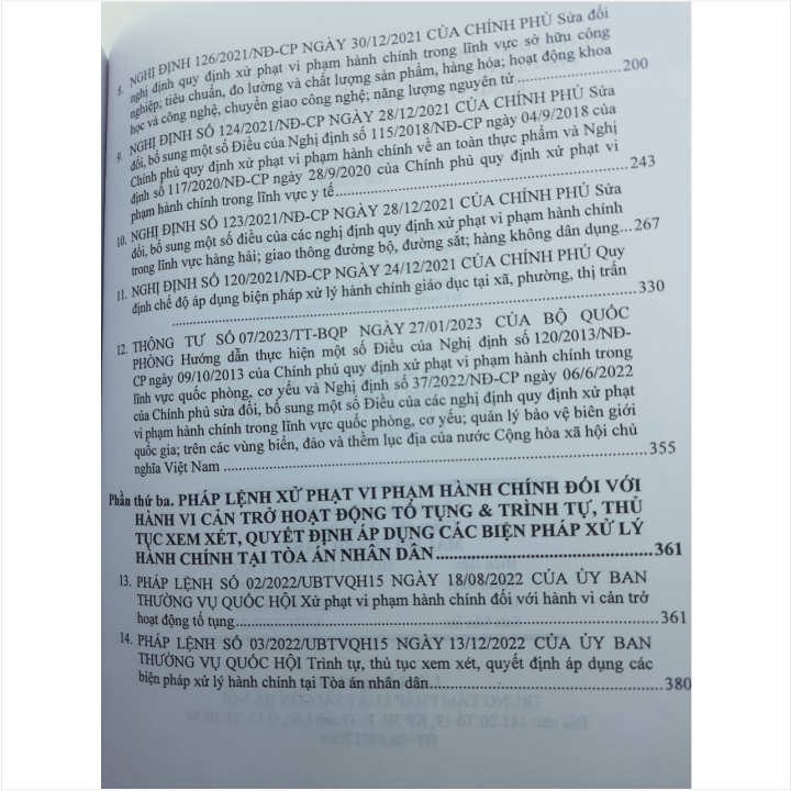 Phần 3. PHÁP LỆNH XỬ PHẠT VI PHẠM HÀNH CHÍNH ĐỐI VỚI HÀNH VI CẢN TRỞ HOẠT ĐỘNG TỐ TỤNG & TRÌNH TỰ, THỦ TỤC XEM XÉT, QUYẾT ĐỊNH ÁP DỤNG CÁC BIỆN PHÁP XỬ LÝ HÀNH CHÍNH TẠI TÒA ÁN NHÂN DÂN