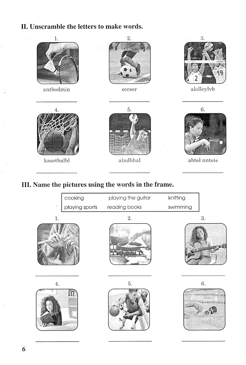 Các bài tập trong mỗi đơn vị bài học được bố cục theo từng phần rõ ràng như sau: