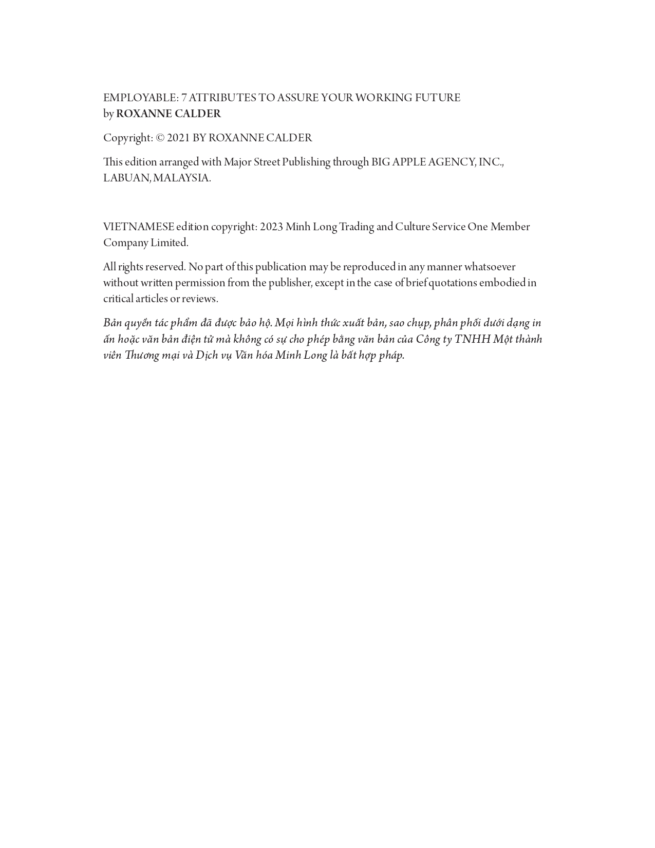 Roxanne tin răng khả năng được tuyển dụng là bảo hiểm cho tương lai của bạn. Động lực của bà khi viết cuốn sách này là giúp những người khác khám phá ra sự tự do và sự tự tin có được nhờ phát triển 7 phẩm chất.