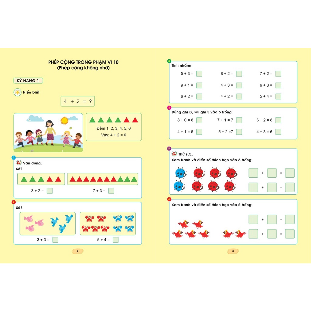 Sách được in khổ to theo sách giáo khoa chương trình mới và minh họa nhiều hình ảnh ngộ nghĩnh nhằm thu hút các bé tập trung học và nhìn theo hình để tư duy nắm bắt kiến thức toán học dễ dàng hơn, hiệu quả hơn.
