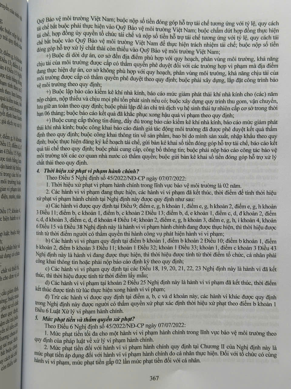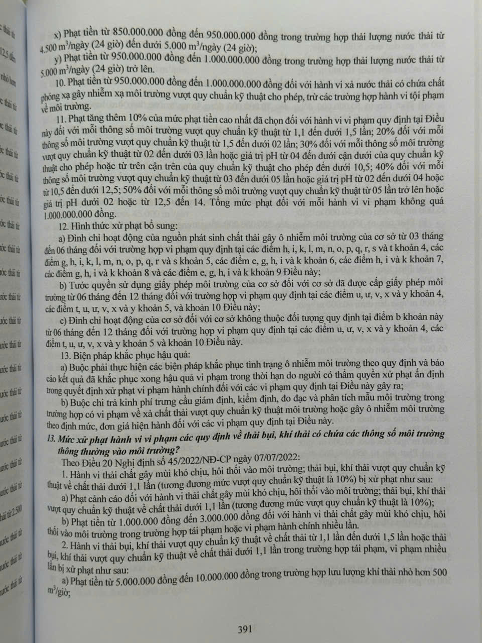 Sách Luật Bảo Vệ Môi Trường, Luật Địa Chất Và Khoáng Sản Và Văn Bản Hướng Dẫn Thi Hành, Quy Định Về Xử Phạt Vi Phạm Hành Chính Trong Lĩnh Vực Bảo Vệ Môi Trường