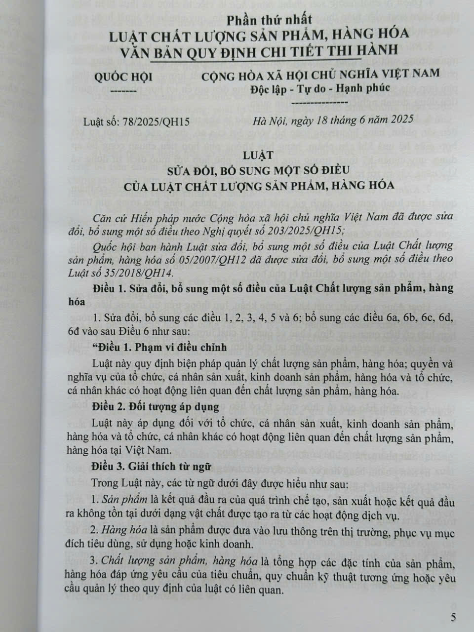 ✨Sách Luật Chất Lượng Sản Phẩm, Hàng Hóa sửa đổi, bổ sung năm 2025 (V2615T)