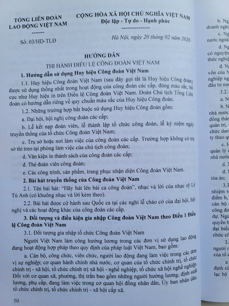 Phần thứ hai. ĐIỀU LỆ CÔNG ĐOÀN VIỆT NAM VÀ VĂN BẢN HƯỚNG DẪN THI HÀNH