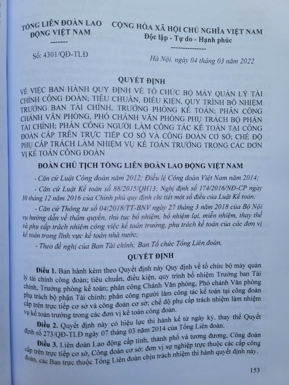 Phần thứ tư. CHẾ ĐỘ KẾ TOÁN ĐỐI VỚI CÔNG ĐOÀN