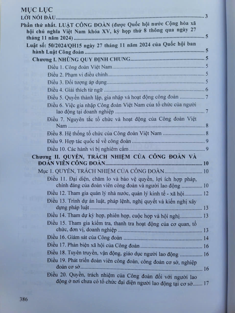 Phần thứ nhất. LUẬT CÔNG ĐOÀN (được Quốc hội nước Cộng hòa xã hội chủ nghĩa Việt Nam khóa XV, kỳ họp thứ 8 thông qua ngày 27 tháng 11 năm 2024)