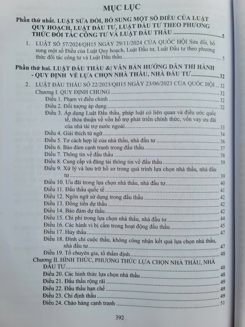 Nội dung cuốn sách bao gồm Luật Đấu thầu năm 2013 (sửa đổi năm 2016, 2017, 2019, 2020); các Nghị định của Chính phủ hướng dẫn chi tiết thi hành một số điều của Luật
