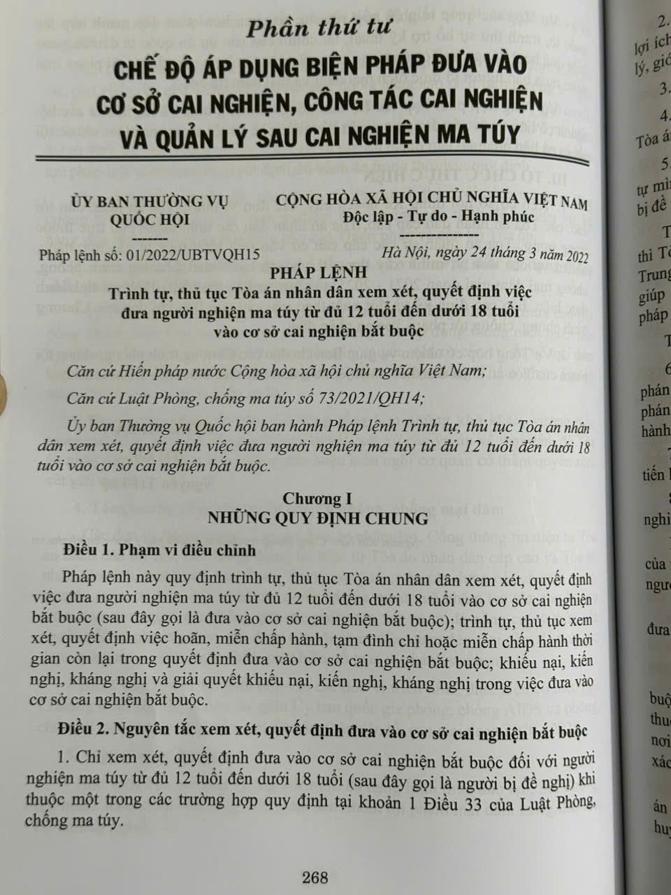 Phần thứ tư. Chế độ áp dụng biện pháp đưa vào cơ sở cai nghiện, công tác cai nghiện và quản lý sau cai nghiện ma tuý